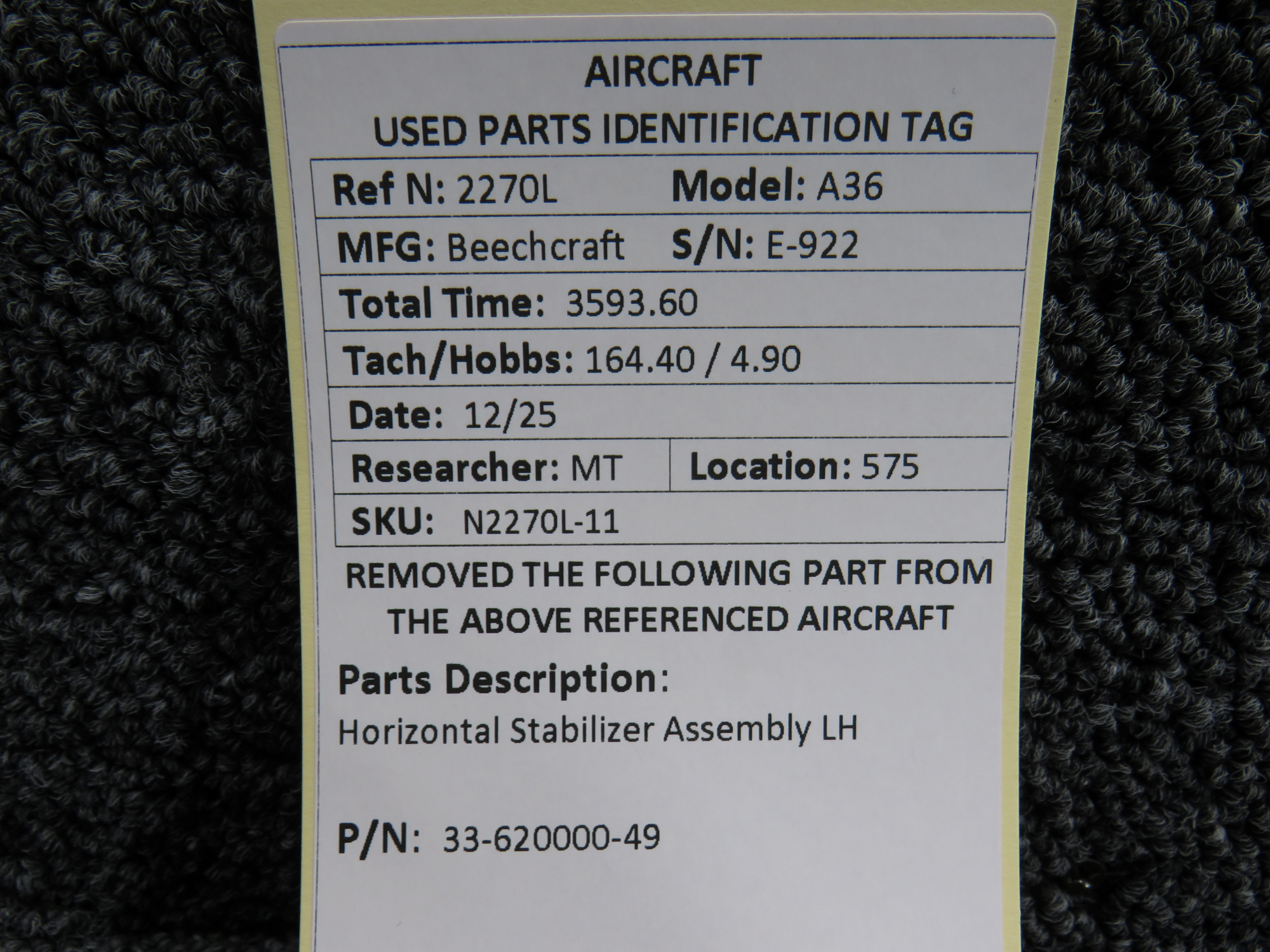 Unless specifically noted, most of our used airplane parts are sold in the condition they were removed, which means you should expect the usual signs of wear and tear.
