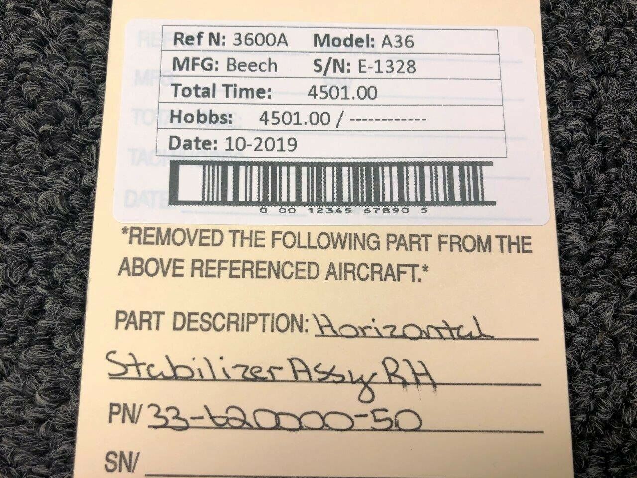 33-620000-50 Beech A36 Horizontal Stabilizer Assembly RH