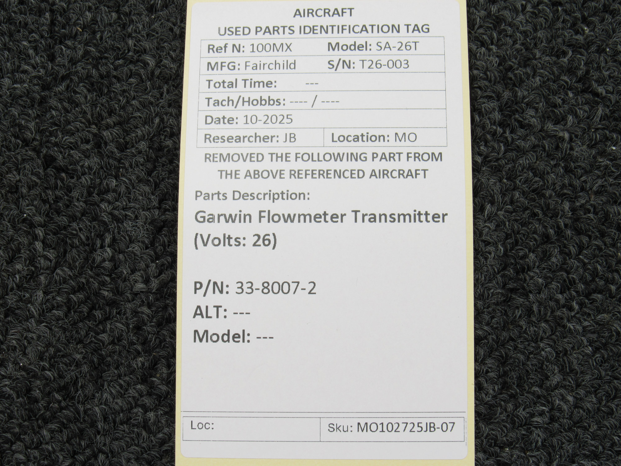 Unless specifically noted, most of our used airplane parts are sold in the condition they were removed, which means you should expect the usual signs of wear and tear.
