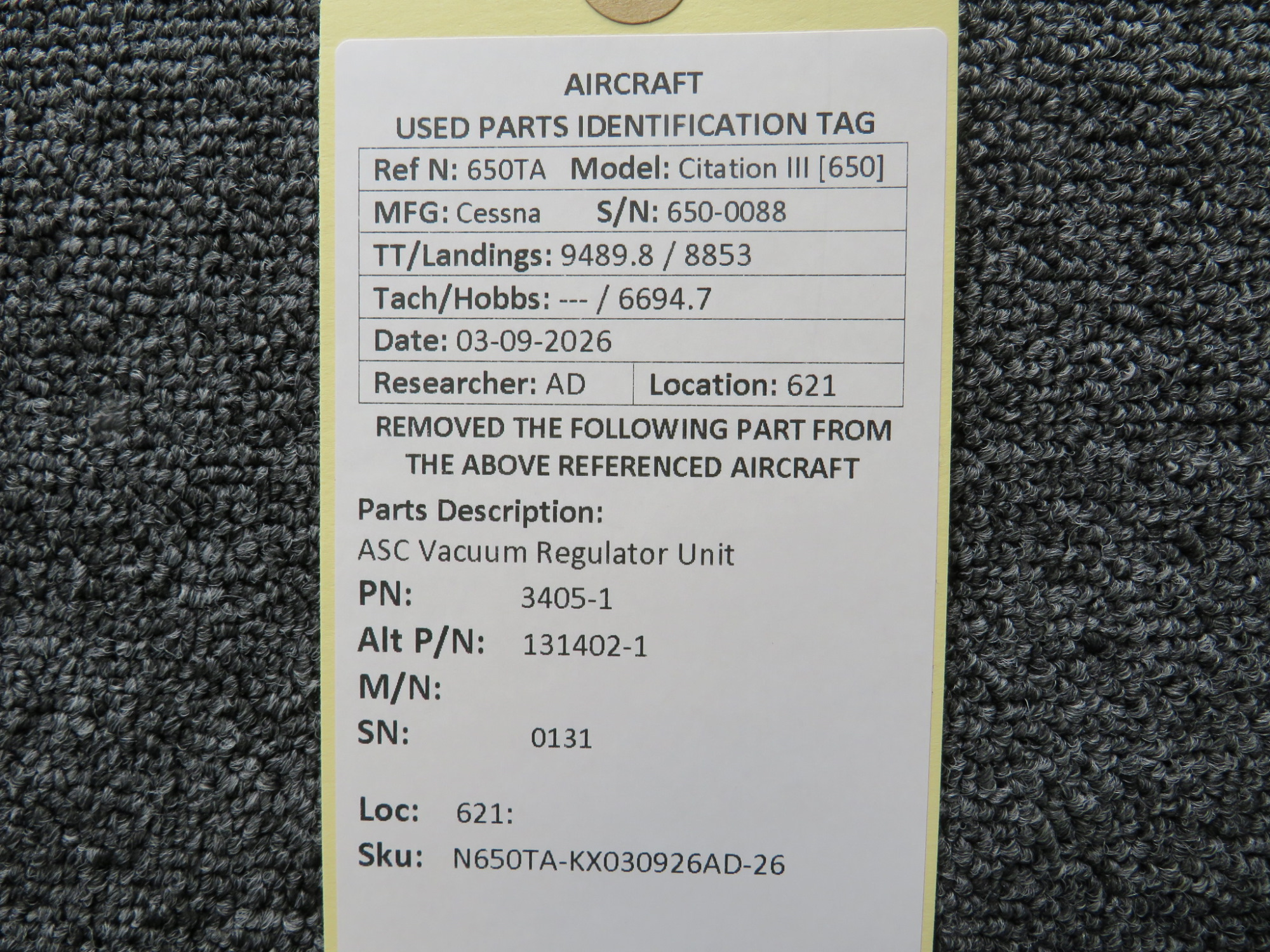 Every part is carefully inspected throughout our process and several times before it goes online. Most items are sold as-removed, just as they came off the aircraft. These parts are not functionally tested. What we do provide is clear photos, full traceability when available, pricing that reflects the as-removed condition, and a no-nonsense 90-day return window.
