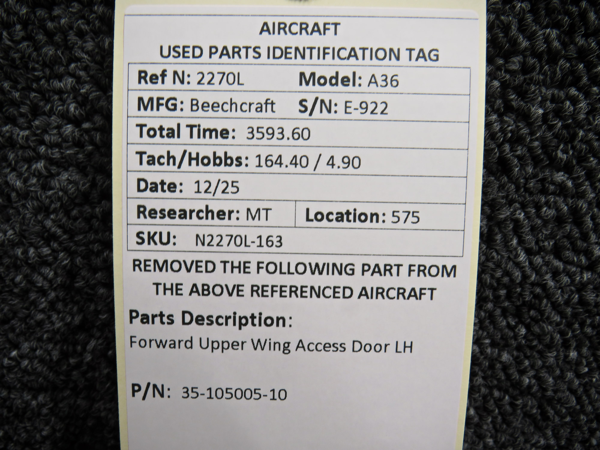 Every part is carefully inspected throughout our process and several times before it goes online. Most items are sold as-removed, just as they came off the aircraft. These parts are not functionally tested. What we do provide is clear photos, full traceability when available, pricing that reflects the as-removed condition, and a no-nonsense 90-day return window.