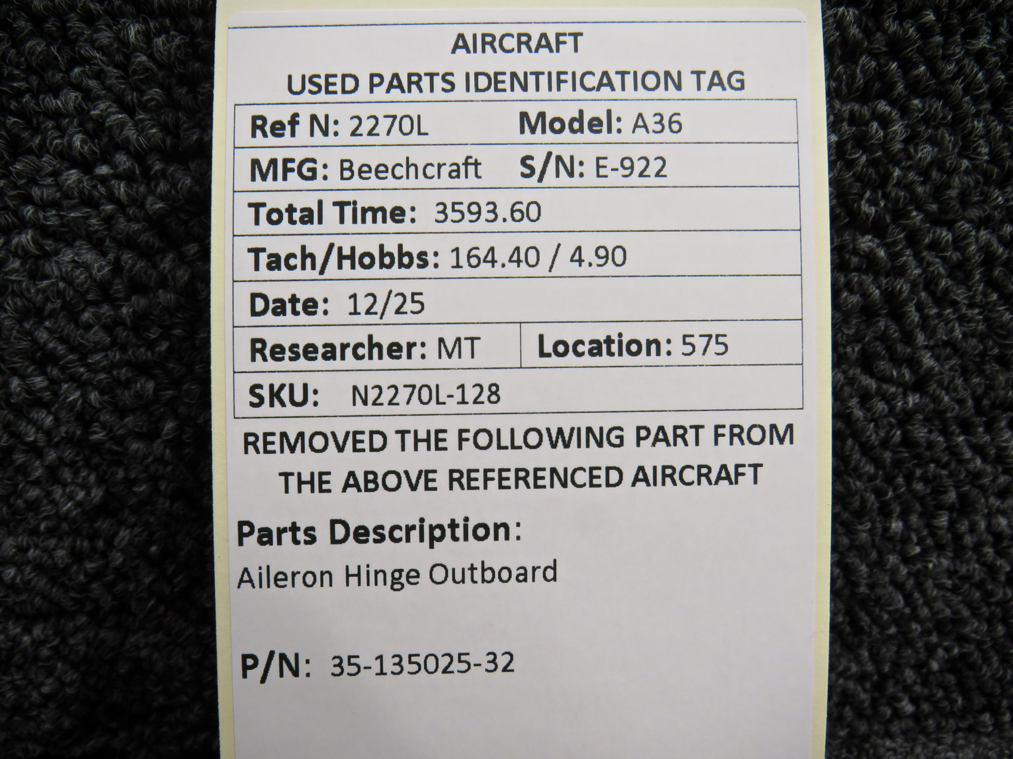 Unless specifically noted, most of our used airplane parts are sold in the condition they were removed, which means you should expect the usual signs of wear and tear.