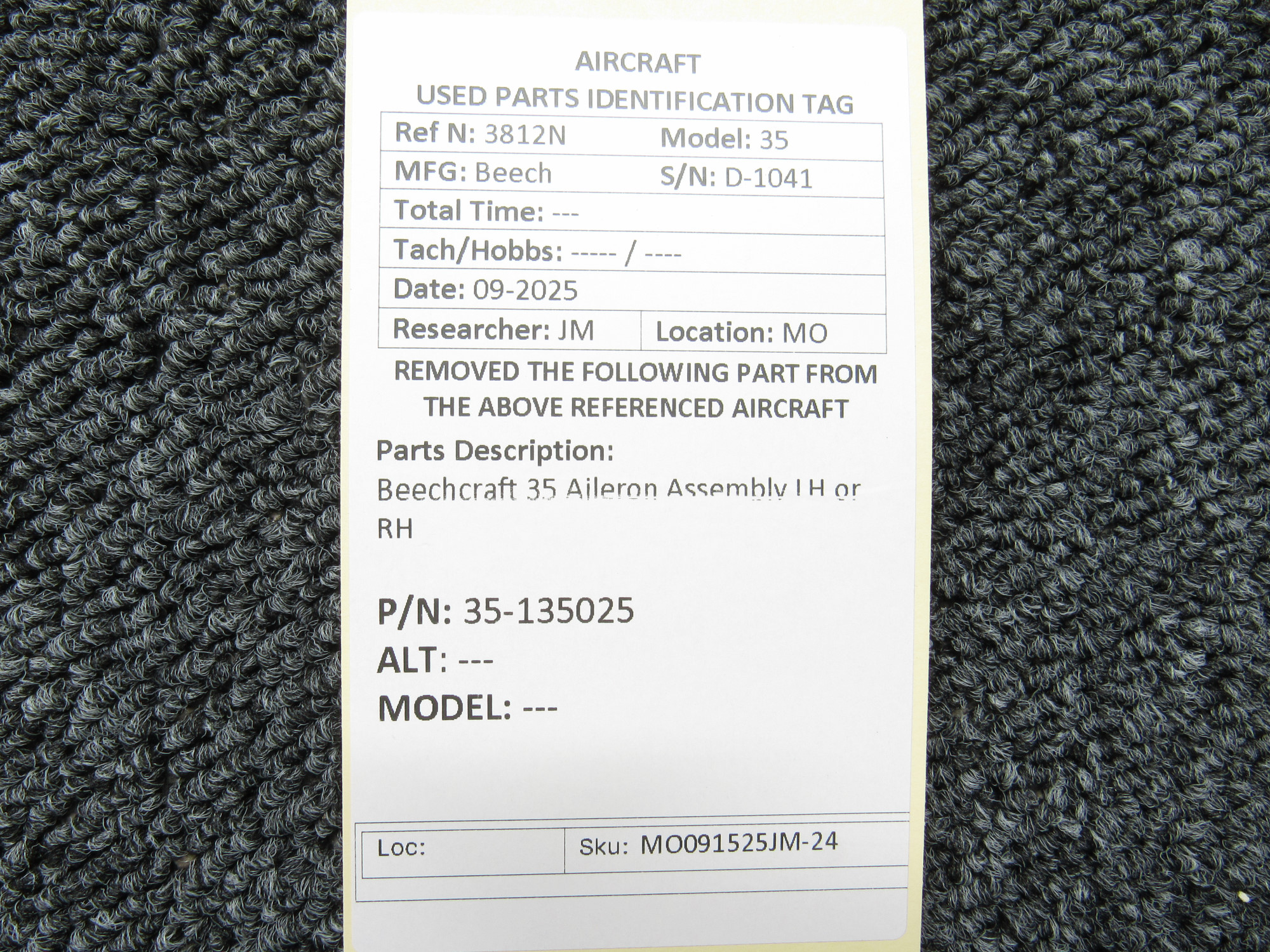 Unless specifically noted, most of our used airplane parts are sold in the condition they were removed, which means you should expect the usual signs of wear and tear.