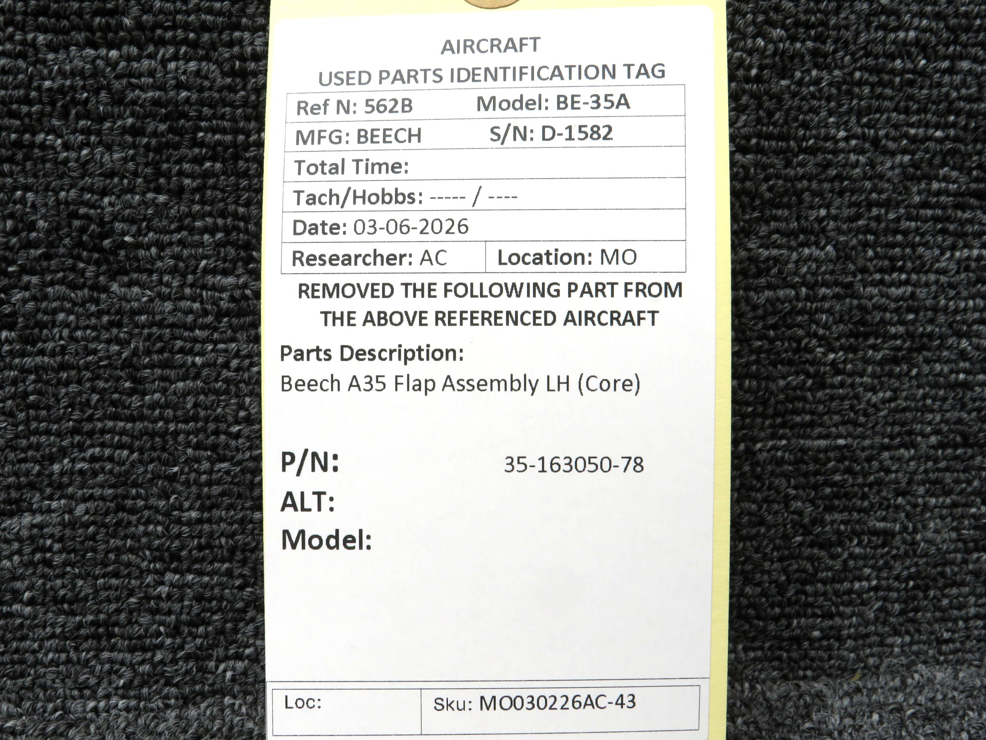 Every part is carefully inspected throughout our process and several times before it goes online. Most items are sold as-removed, just as they came off the aircraft. These parts are not functionally tested. What we do provide is clear photos, full traceability when available, pricing that reflects the as-removed condition, and a no-nonsense 90-day return window.