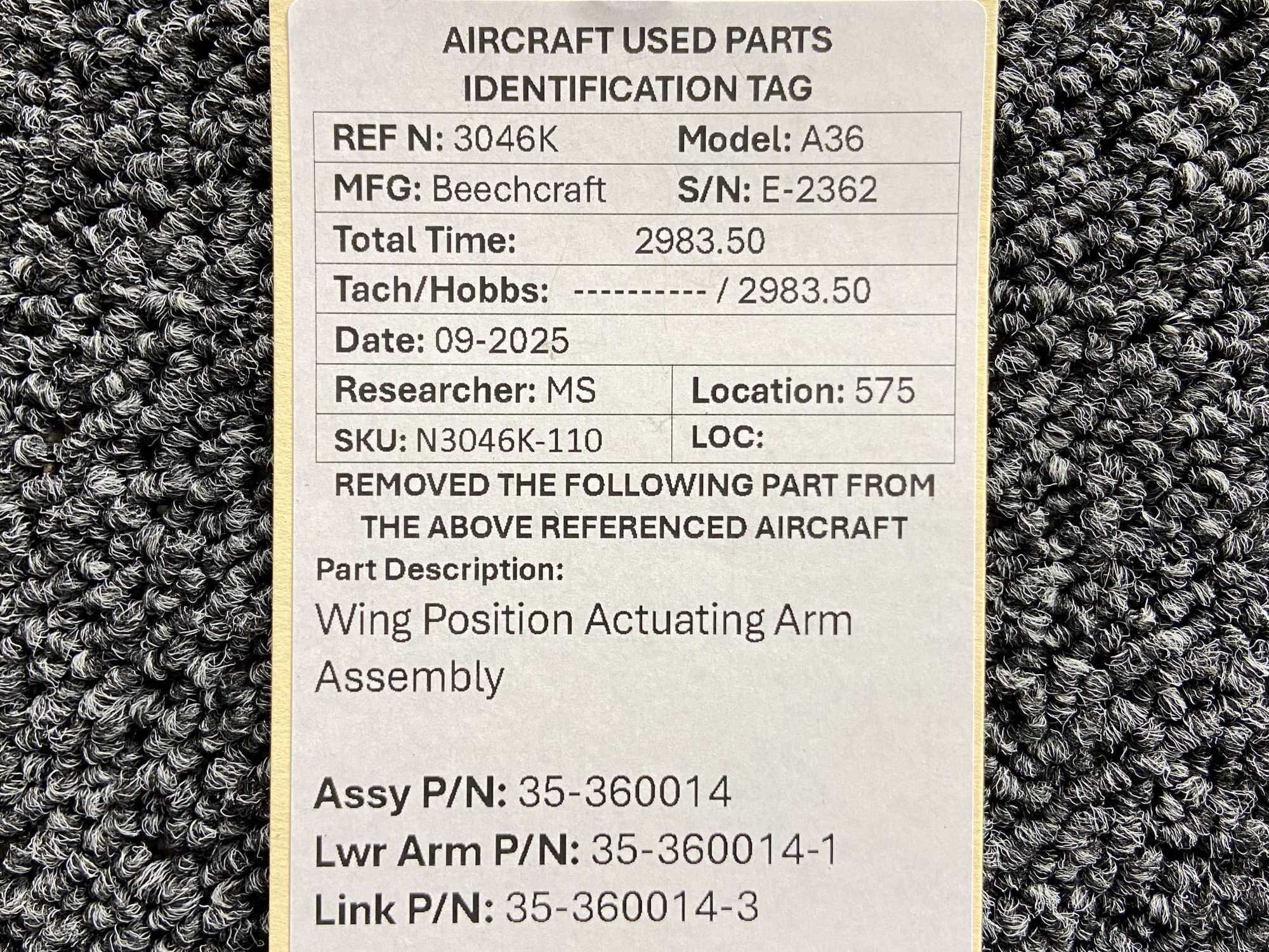 - Lower Arm Part Number: 35-360014-1