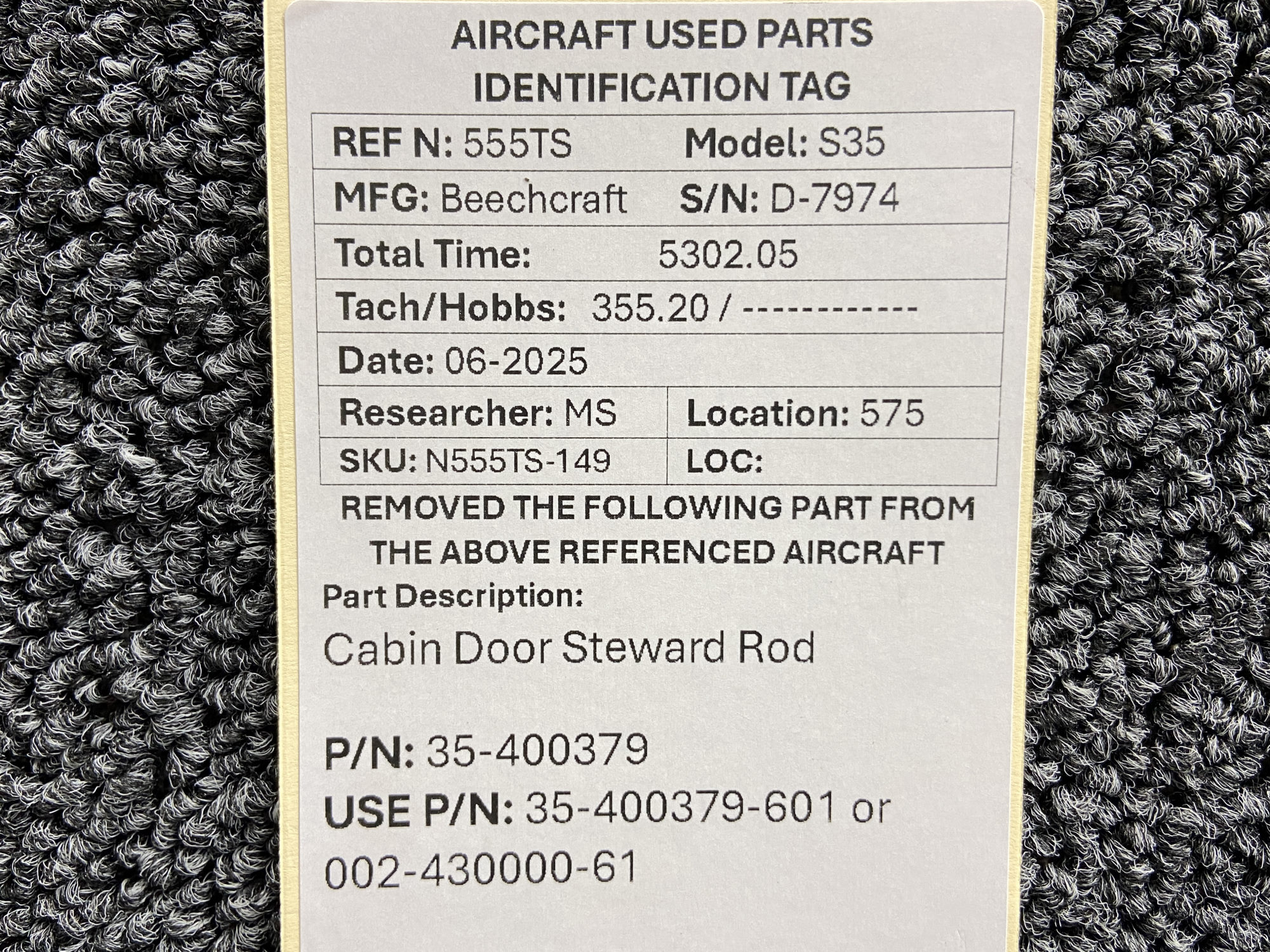 Unless specifically noted, most of our used airplane parts are sold in the condition they were removed, which means you should expect the usual signs of wear and tear.