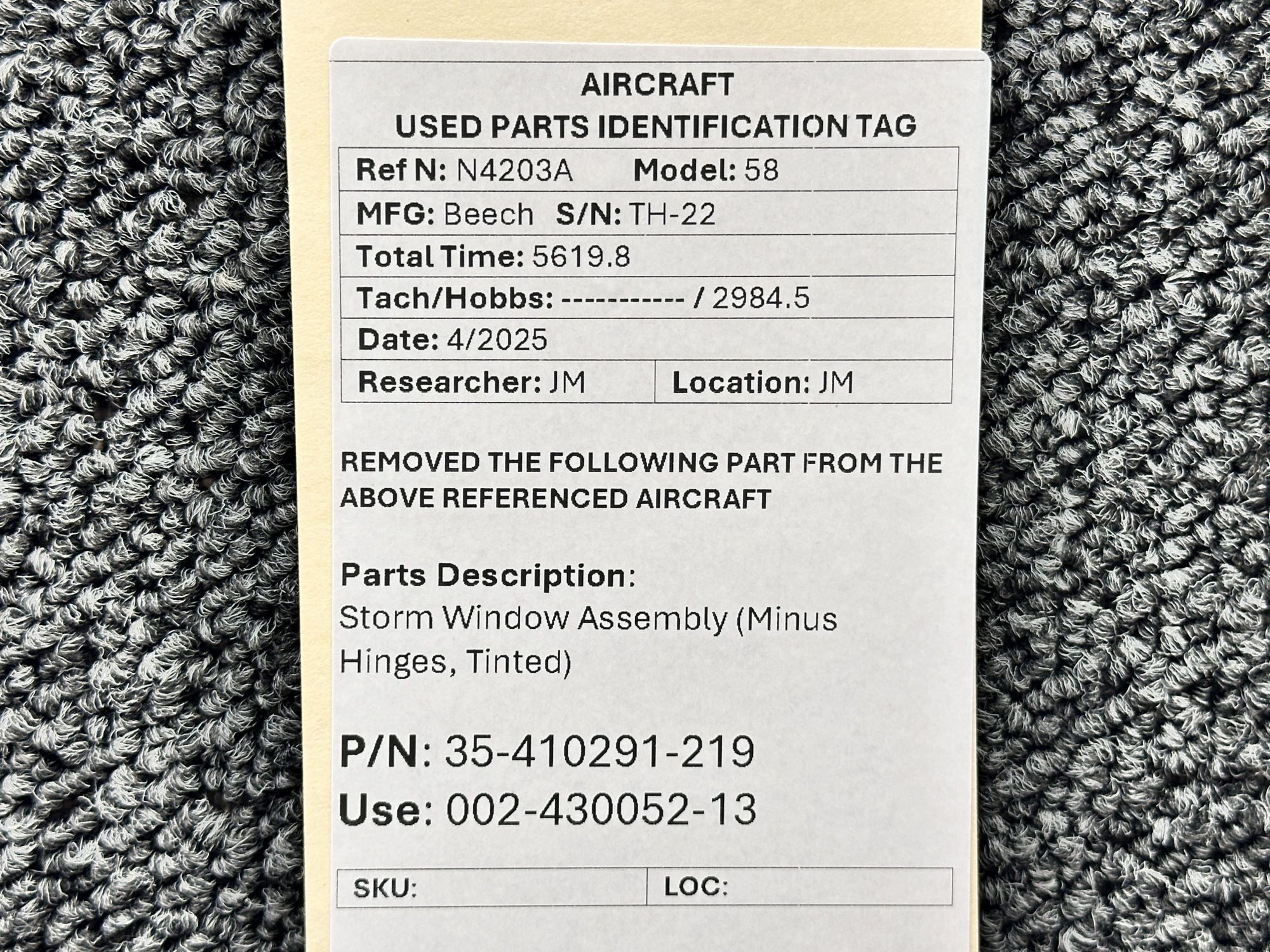 Unless specifically noted, most of our used airplane parts are sold in the condition they were removed, which means you should expect the usual signs of wear and tear.