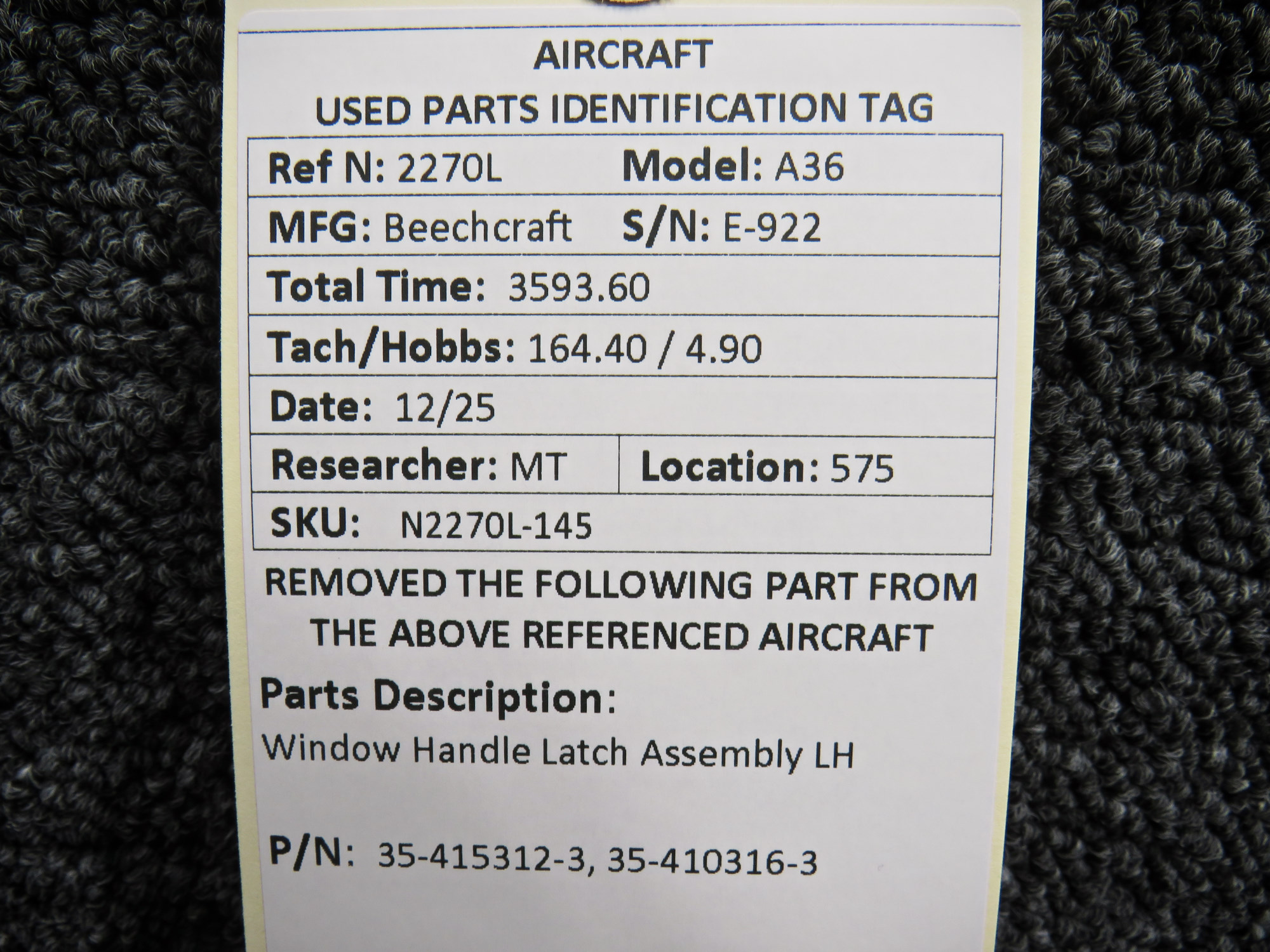 Every part is carefully inspected throughout our process and several times before it goes online. Most items are sold as-removed, just as they came off the aircraft. These parts are not functionally tested. What we do provide is clear photos, full traceability when available, pricing that reflects the as-removed condition, and a no-nonsense 90-day return window.