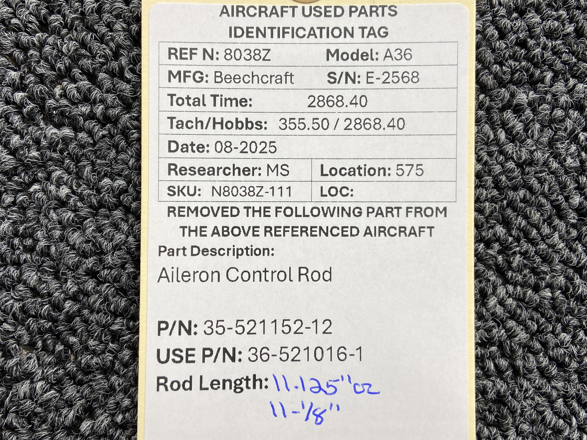 - Rod Length: 11.125" or 11-1/8"