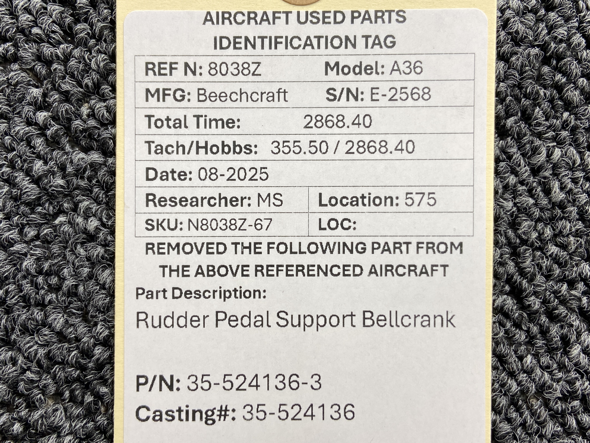 Unless specifically noted, most of our used airplane parts are sold in the condition they were removed, which means you should expect the usual signs of wear and tear.