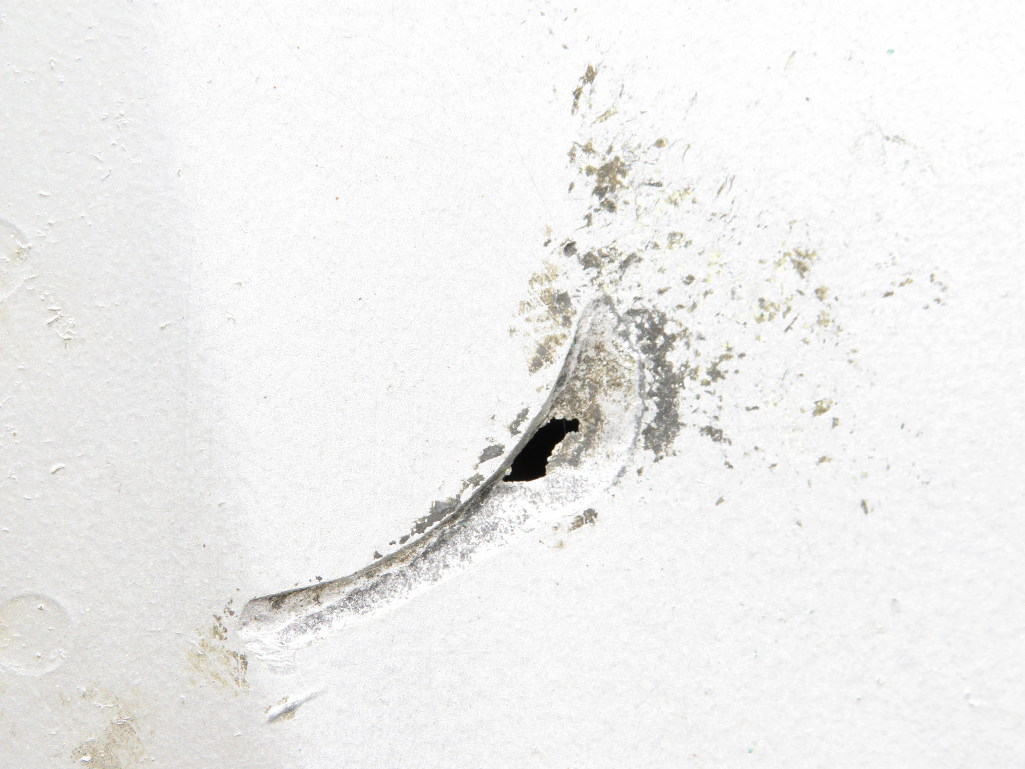 - Hole through skin and dented