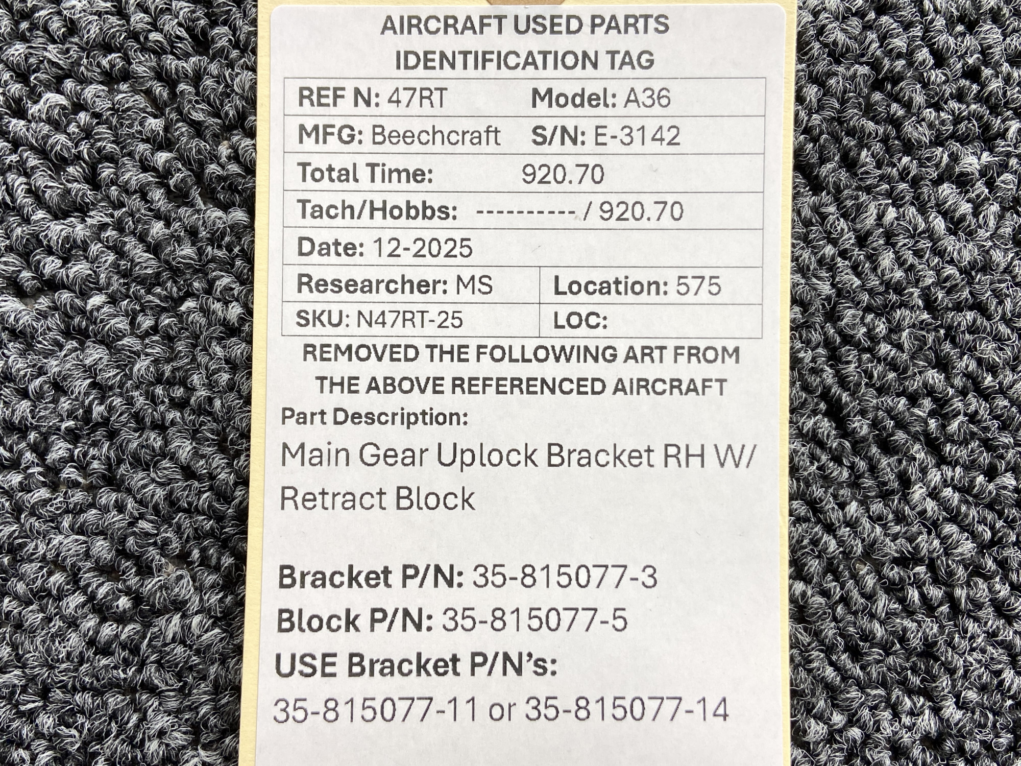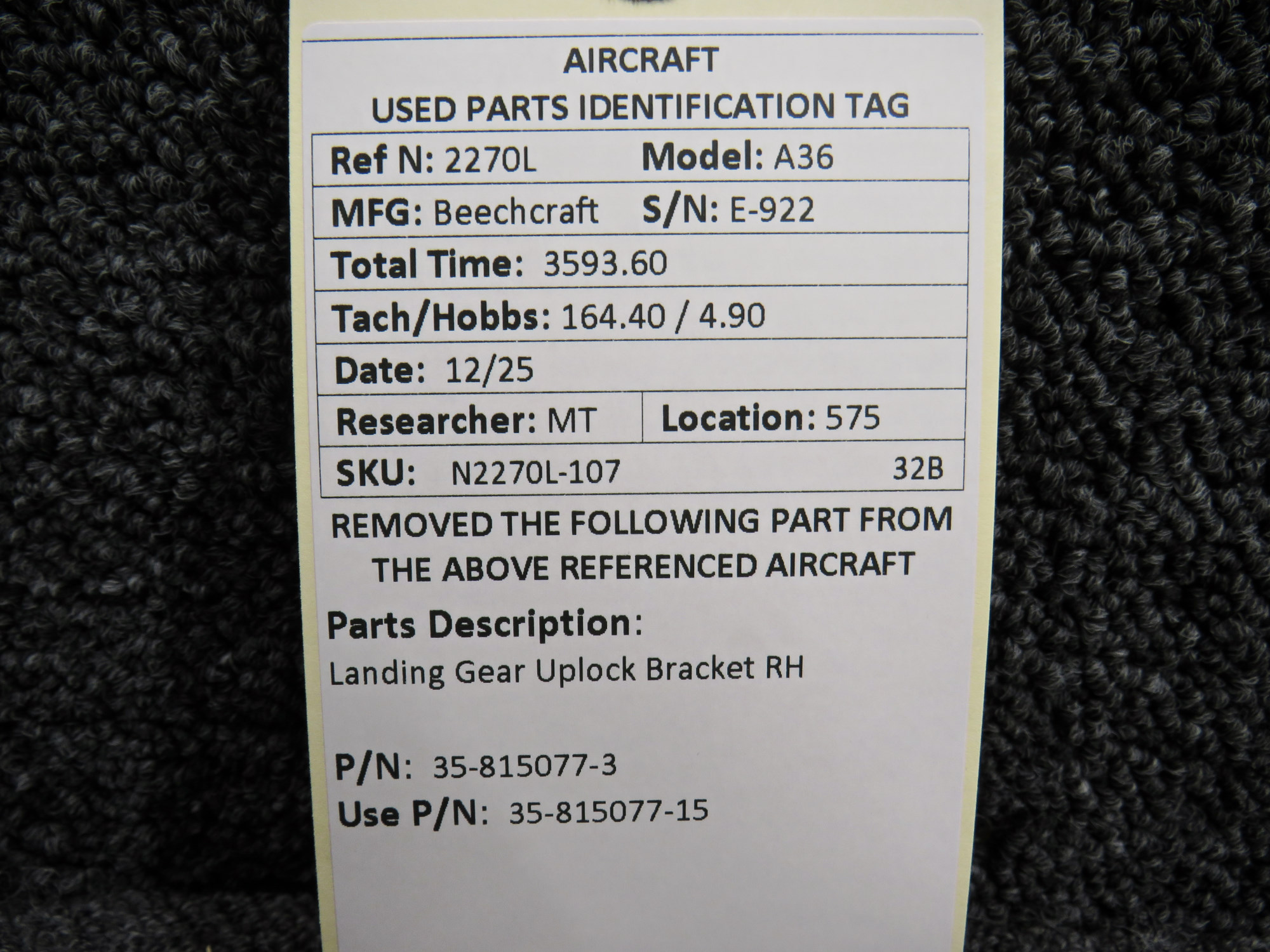 Unless specifically noted, most of our used airplane parts are sold in the condition they were removed, which means you should expect the usual signs of wear and tear.