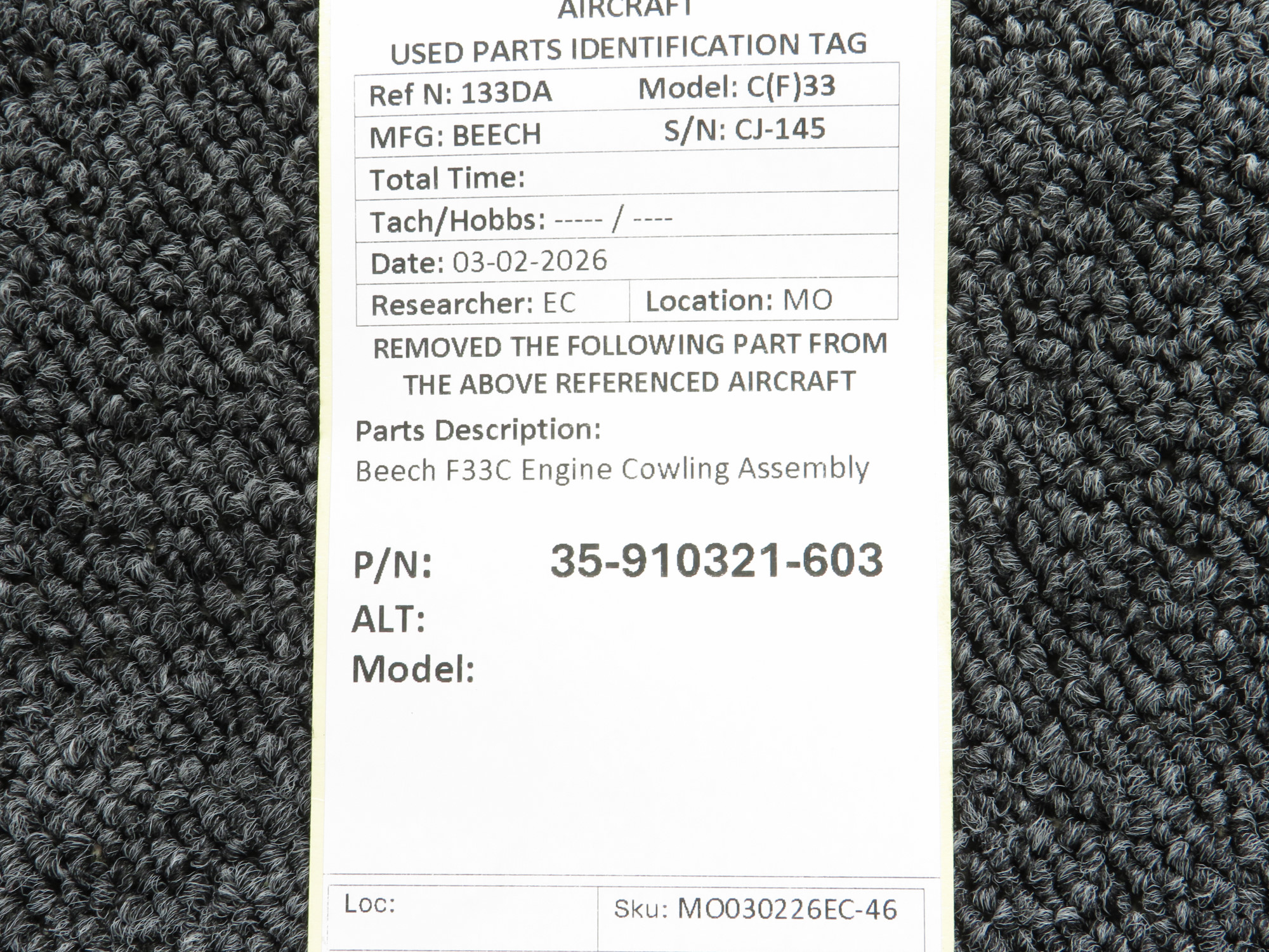 Every part is carefully inspected throughout our process and several times before it goes online. Most items are sold as-removed, just as they came off the aircraft. These parts are not functionally tested. What we do provide is clear photos, full traceability when available, pricing that reflects the as-removed condition, and a no-nonsense 90-day return window.