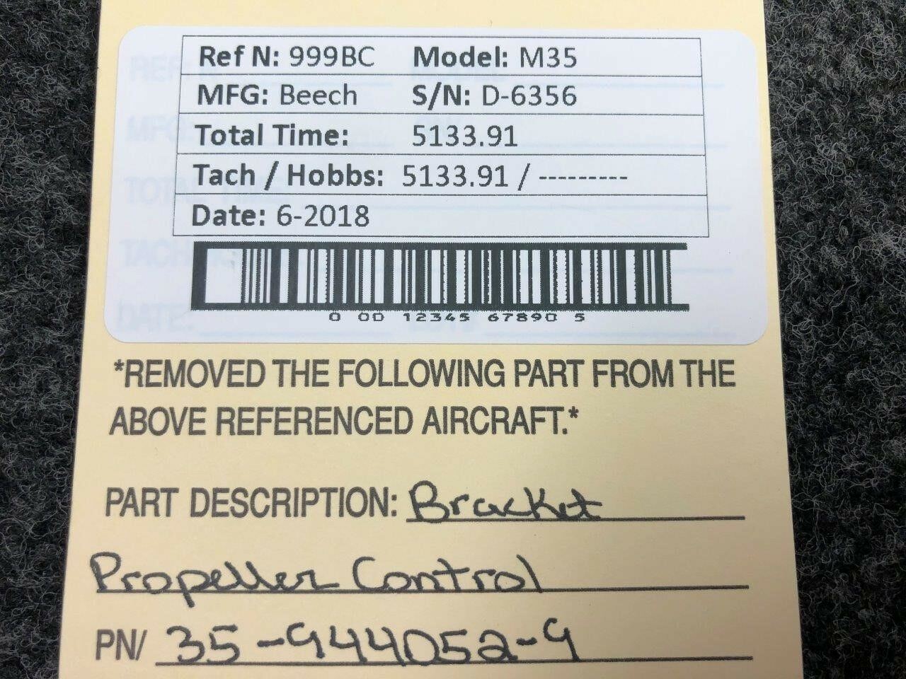 35-944052-9 Beech M35 Bracket Propeller Control
