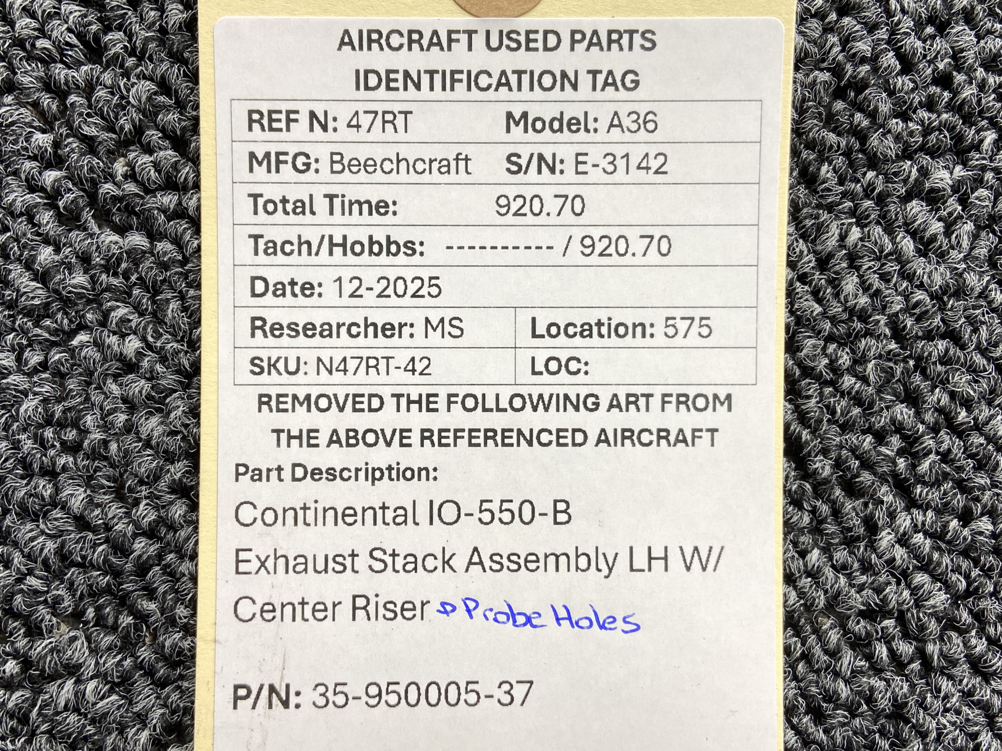 Unless specifically noted, most of our used airplane parts are sold in the condition they were removed, which means you should expect the usual signs of wear and tear.