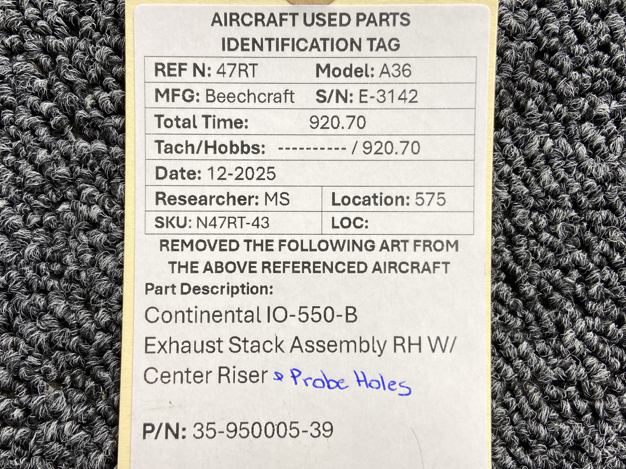 Unless specifically noted, most of our used airplane parts are sold in the condition they were removed, which means you should expect the usual signs of wear and tear.