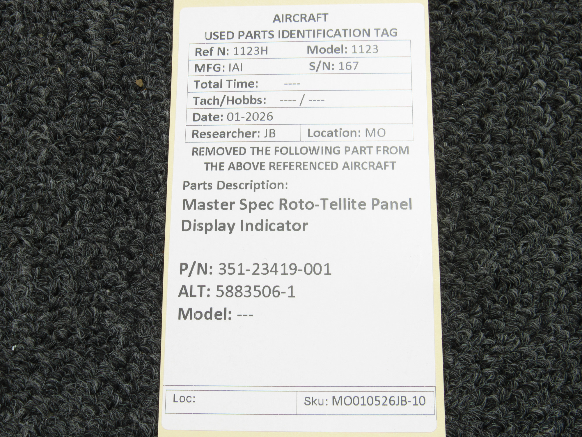 Unless specifically noted, most of our used airplane parts are sold in the condition they were removed, which means you should expect the usual signs of wear and tear.