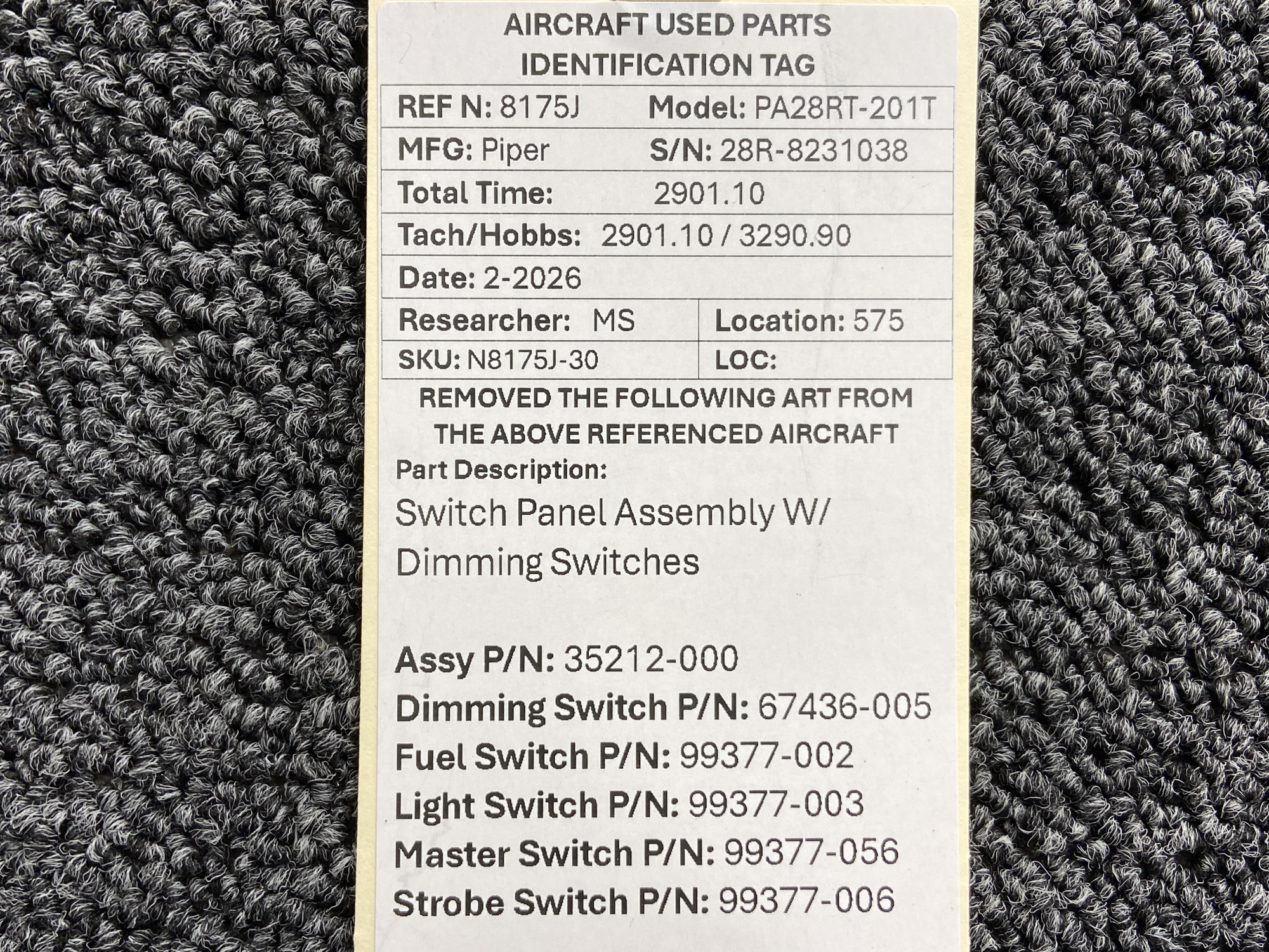 Every part is carefully inspected throughout our process and several times before it goes online. Most items are sold as-removed, just as they came off the aircraft. These parts are not functionally tested. What we do provide is clear photos, full traceability when available, pricing that reflects the as-removed condition, and a no-nonsense 90-day return window.