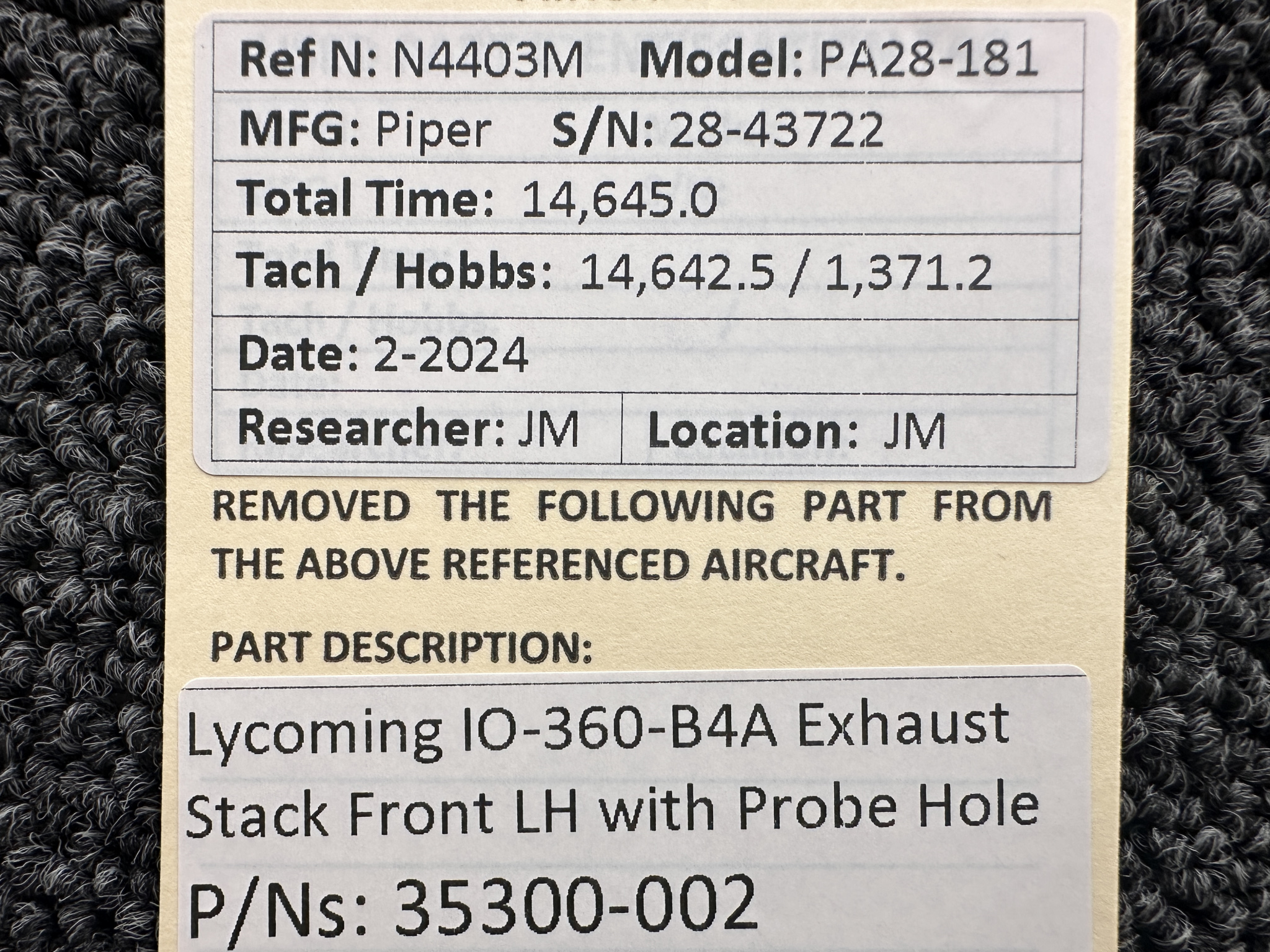 - Removed From: Lycoming IO-360-B4A