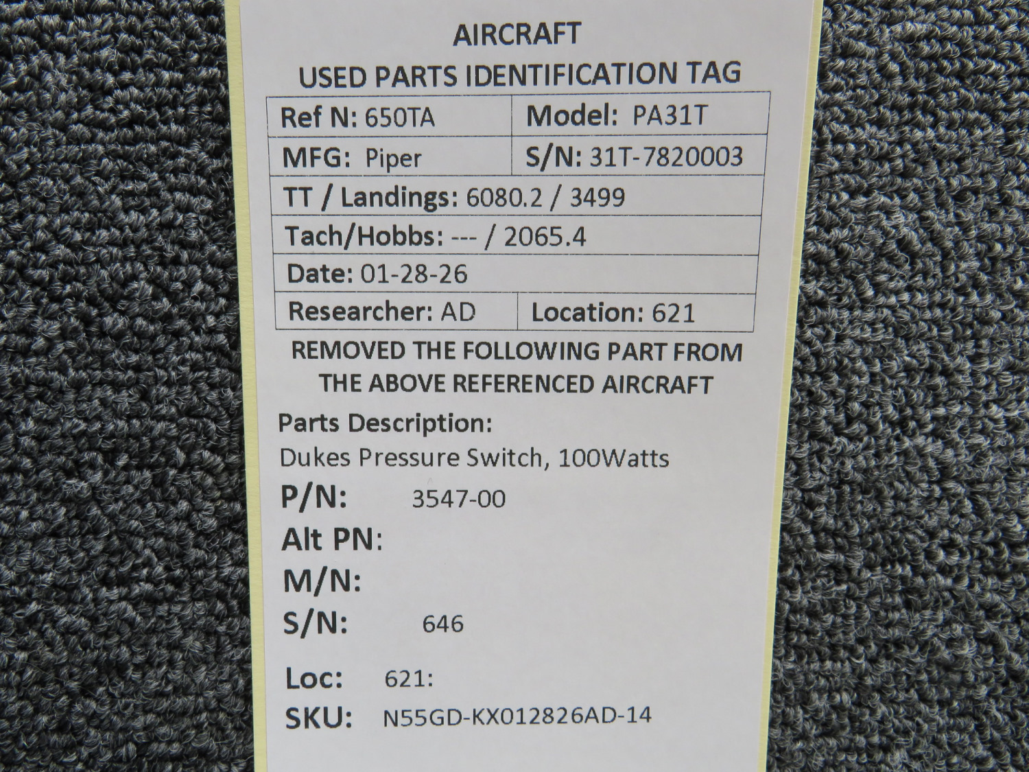 Unless specifically noted, most of our used airplane parts are sold in the condition they were removed, which means you should expect the usual signs of wear and tear.