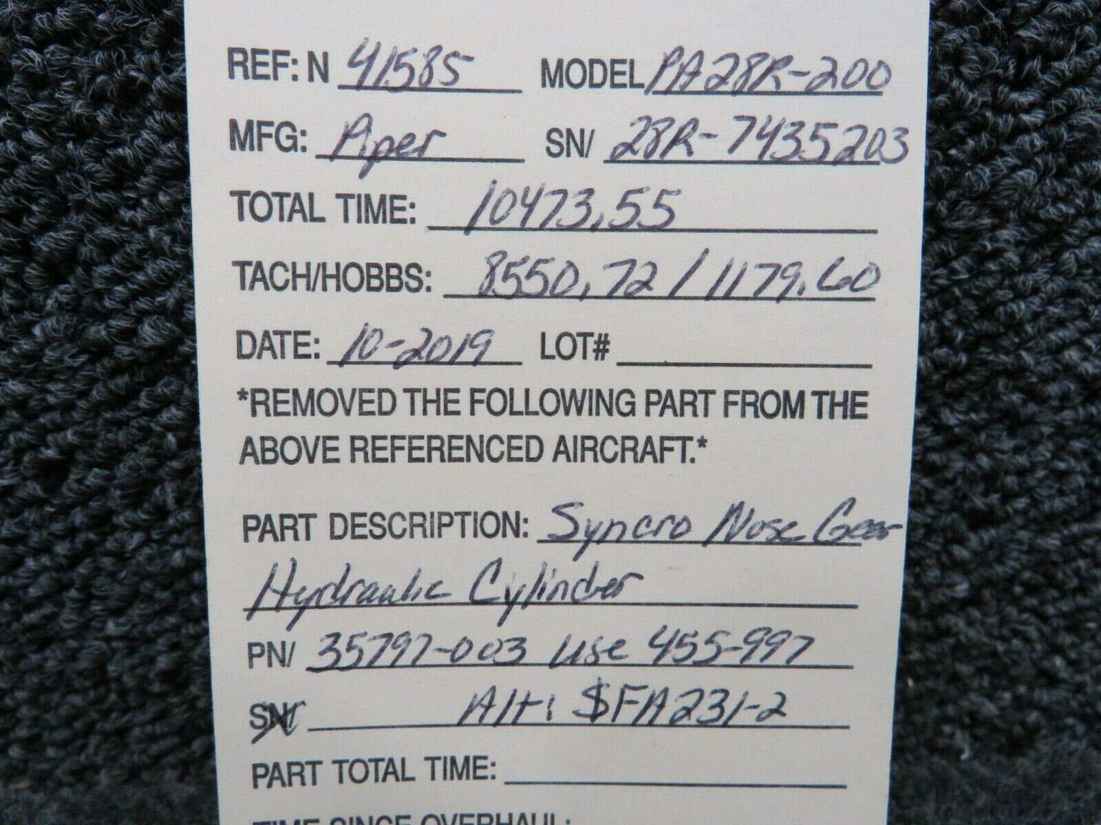 35797-003 (USE:455-997) Piper PA28R-200 Syncro Nose Gear Hydraulic Cylinder