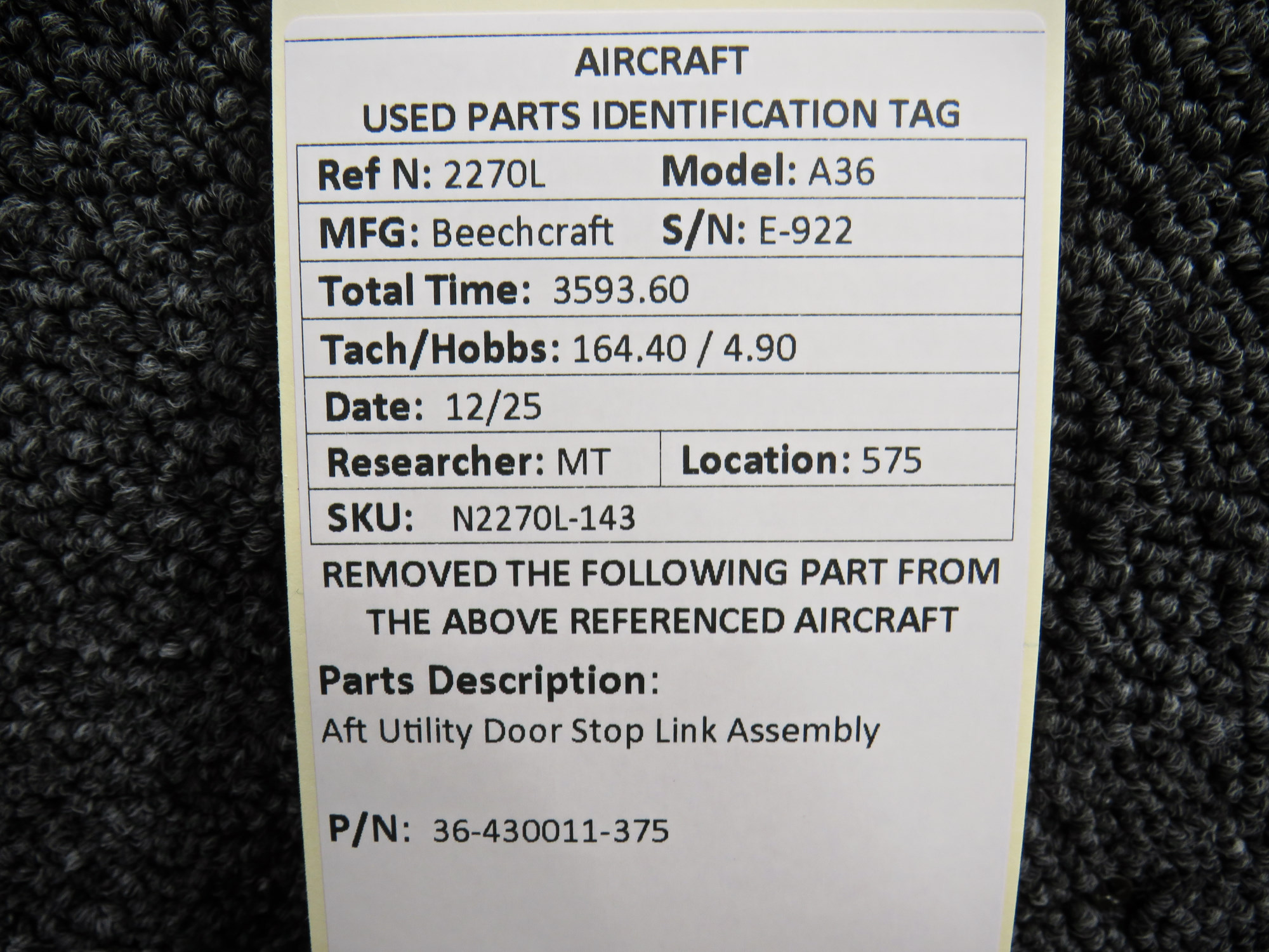 Unless specifically noted, most of our used airplane parts are sold in the condition they were removed, which means you should expect the usual signs of wear and tear.