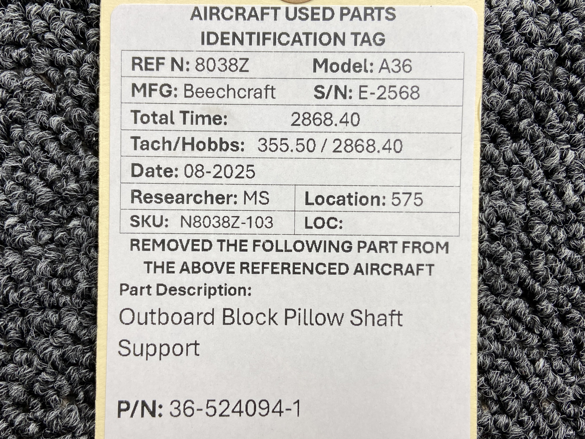 Unless specifically noted, most of our used airplane parts are sold in the condition they were removed, which means you should expect the usual signs of wear and tear.