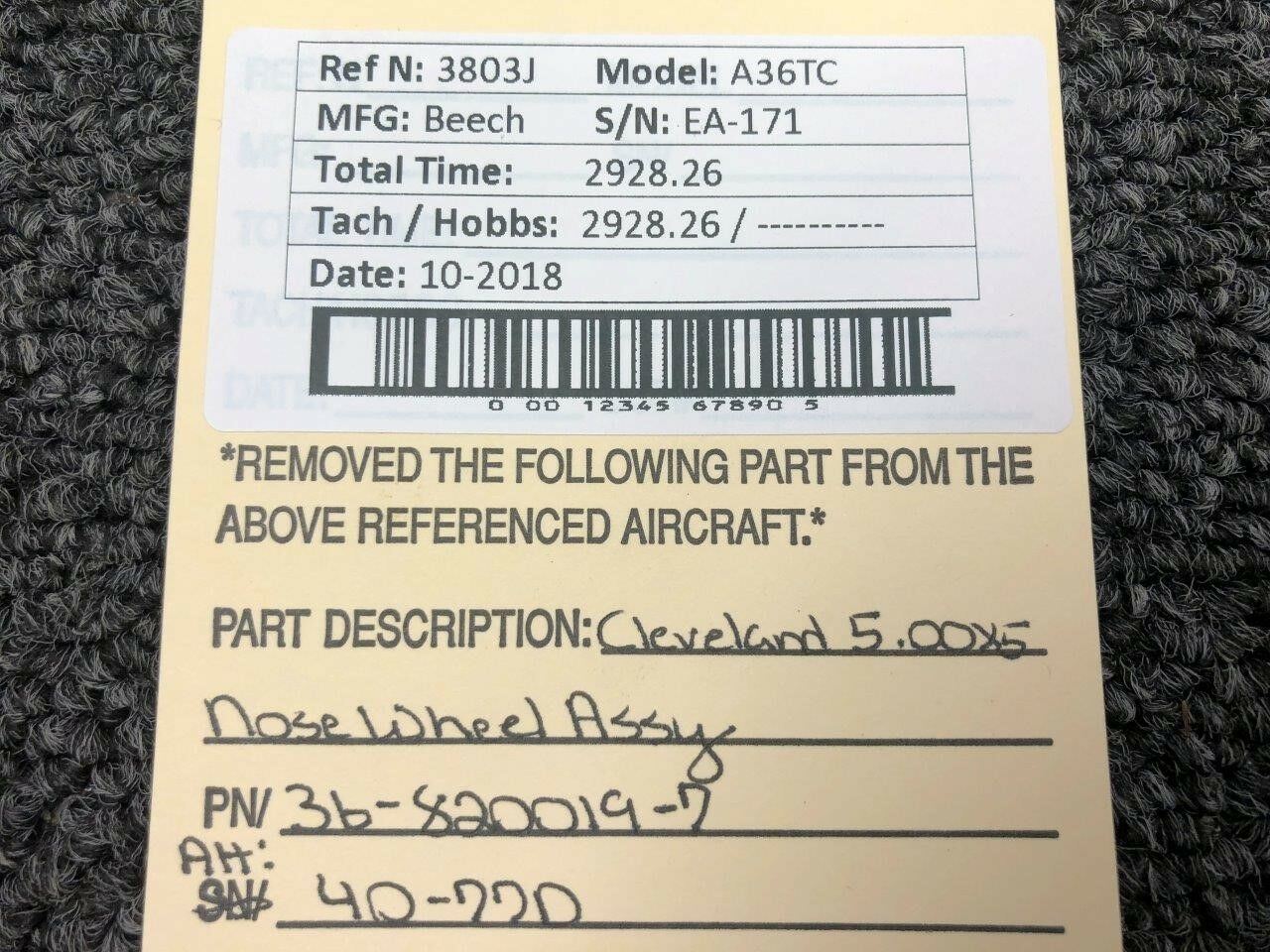36-820019-7 (Alt: 40-77D) Beech A36TC Cleveland 5.00X5 Nose Wheel Assy