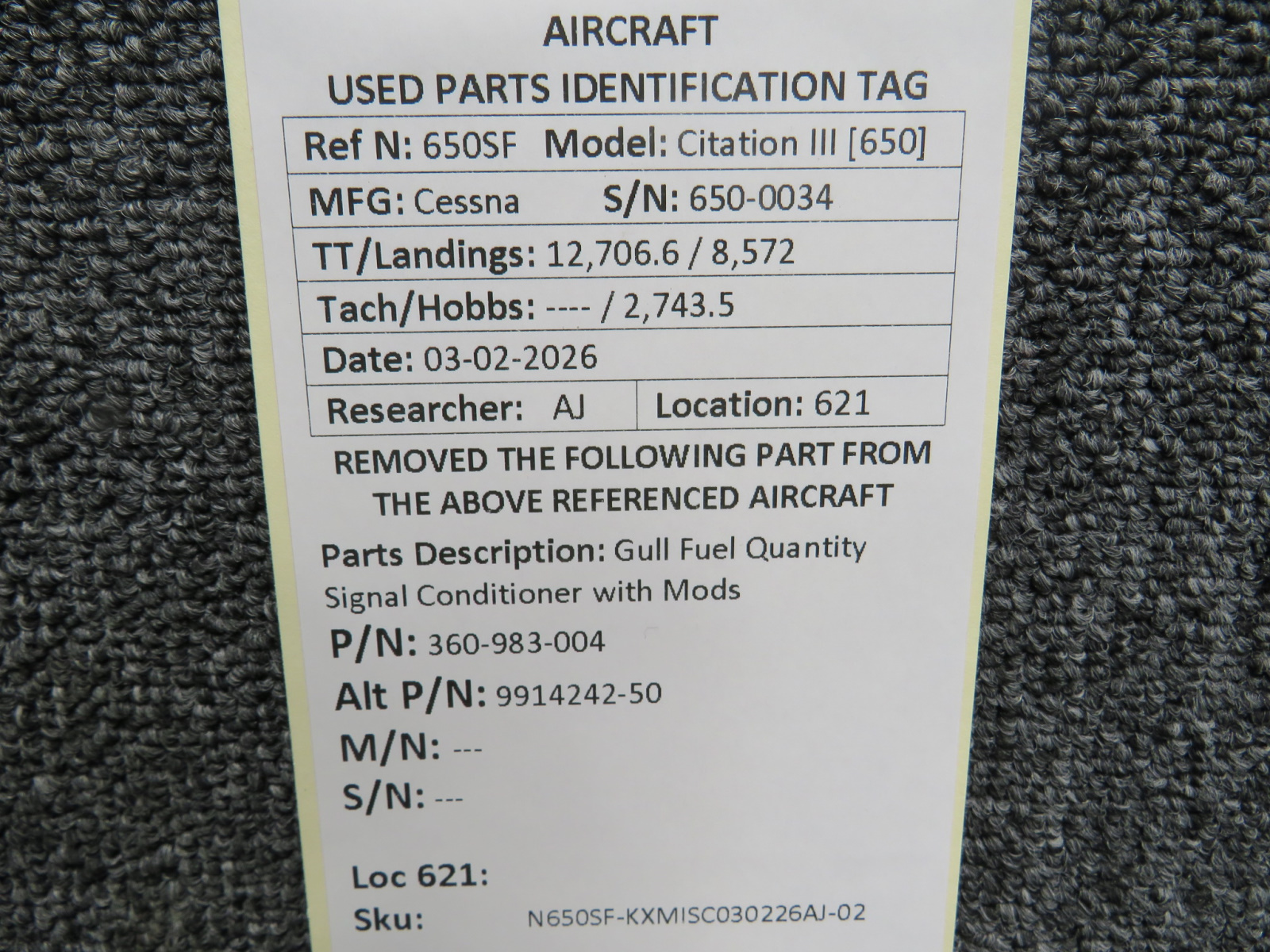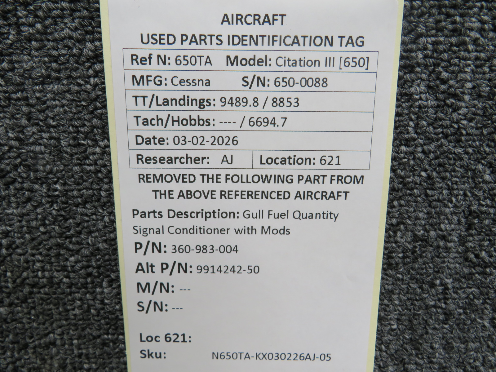 Every part is carefully inspected throughout our process and several times before it goes online. Most items are sold as-removed, just as they came off the aircraft. These parts are not functionally tested. What we do provide is clear photos, full traceability when available, pricing that reflects the as-removed condition, and a no-nonsense 90-day return window.