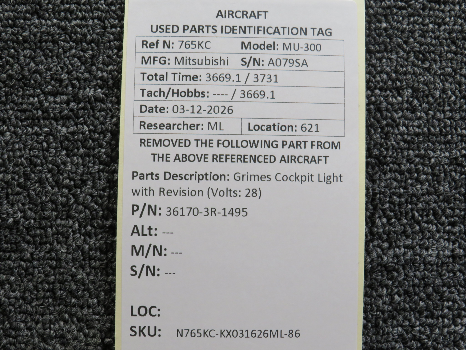 Every part is carefully inspected throughout our process and several times before it goes online. Most items are sold as-removed, just as they came off the aircraft. These parts are not functionally tested. What we do provide is clear photos, full traceability when available, pricing that reflects the as-removed condition, and a no-nonsense 90-day return window.