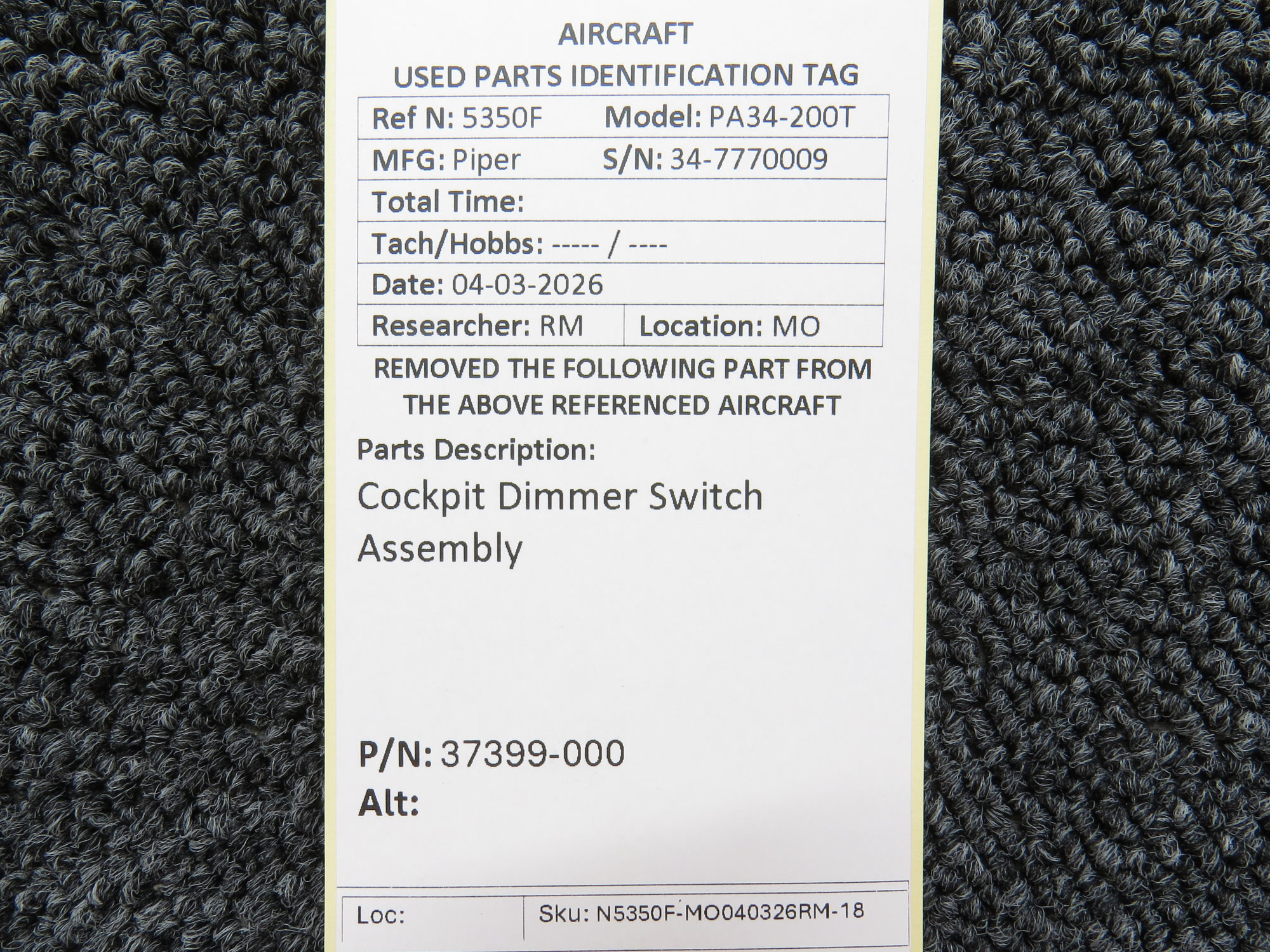 Every part is carefully inspected throughout our process and several times before it goes online. Most items are sold as-removed, just as they came off the aircraft. These parts are not functionally tested. What we do provide is clear photos, full traceability when available, pricing that reflects the as-removed condition, and a no-nonsense 90-day return window.