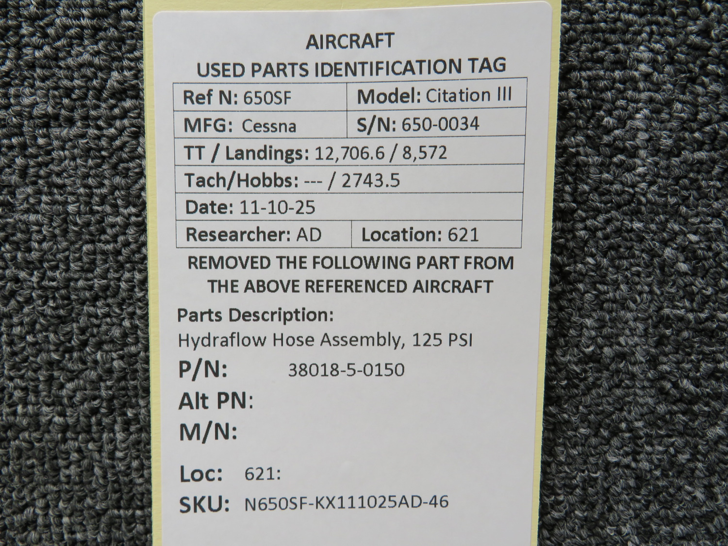 Unless specifically noted, most of our used airplane parts are sold in the condition they were removed, which means you should expect the usual signs of wear and tear.