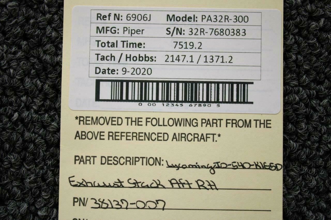 38137-007 Piper PA32R-300 Lycoming IO-540-K1G5D Exhaust Stack Aft RH
