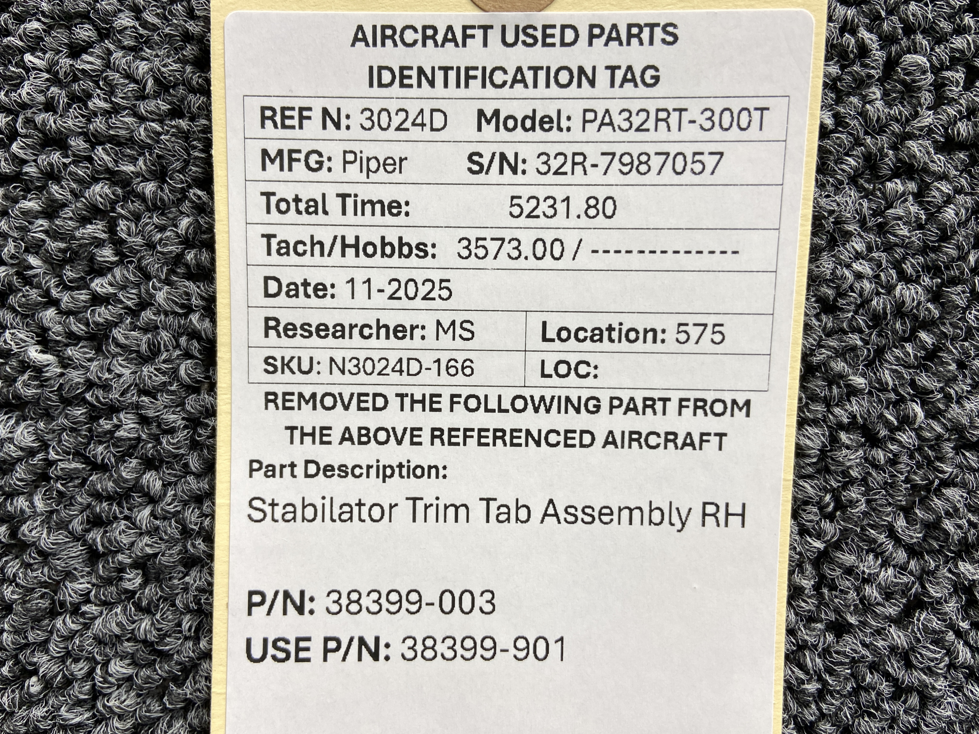 Unless specifically noted, most of our used airplane parts are sold in the condition they were removed, which means you should expect the usual signs of wear and tear.