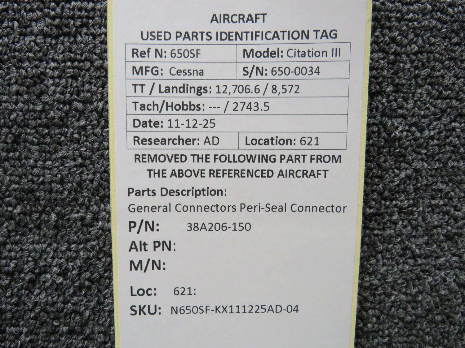 Unless specifically noted, most of our used airplane parts are sold in the condition they were removed, which means you should expect the usual signs of wear and tear.