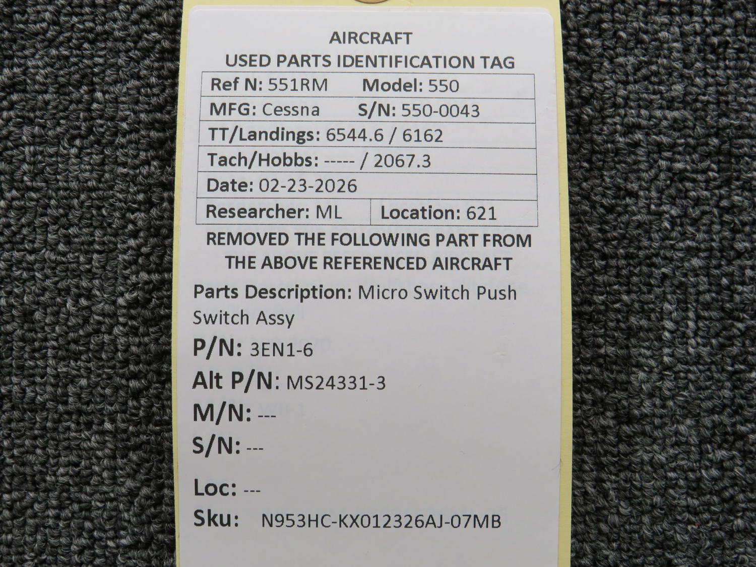 Unless specifically noted, most of our used airplane parts are sold in the condition they were removed, which means you should expect the usual signs of wear and tear.