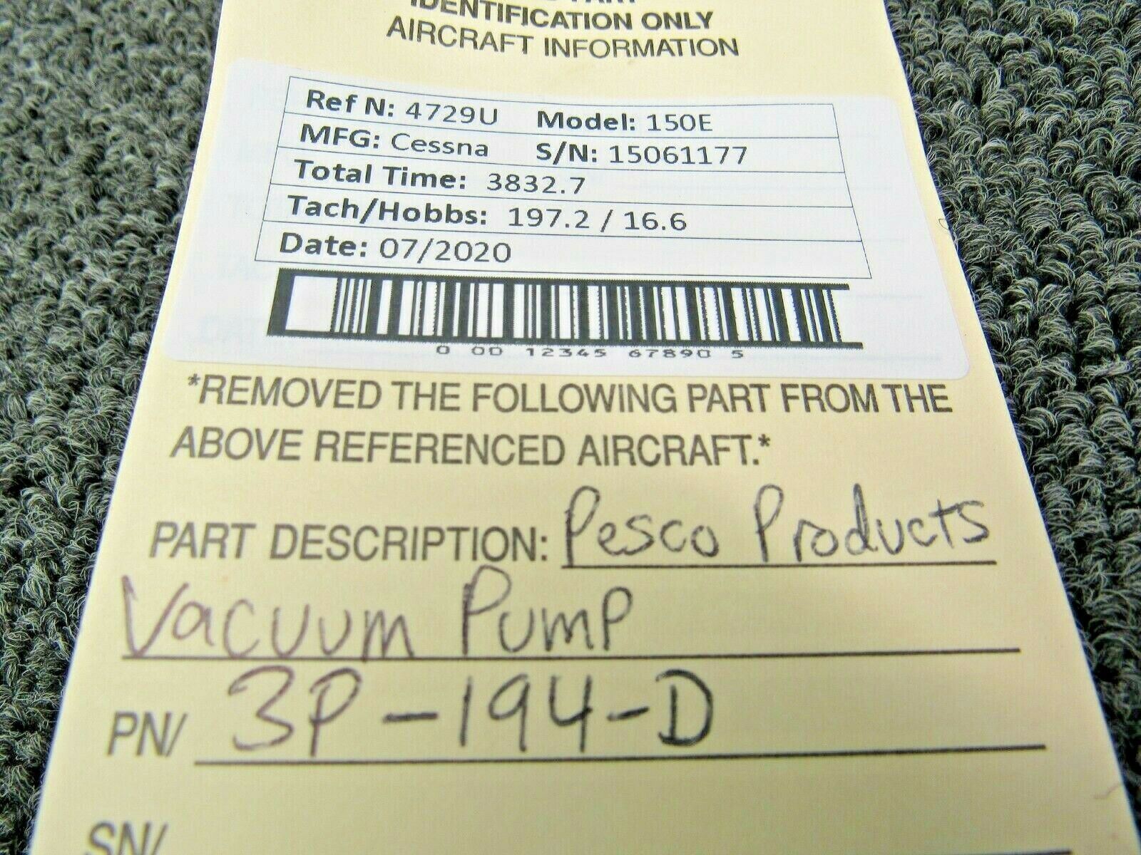 3P-194-D Cessna 150E Continental O-200A Pesco Products Vacuum Pump