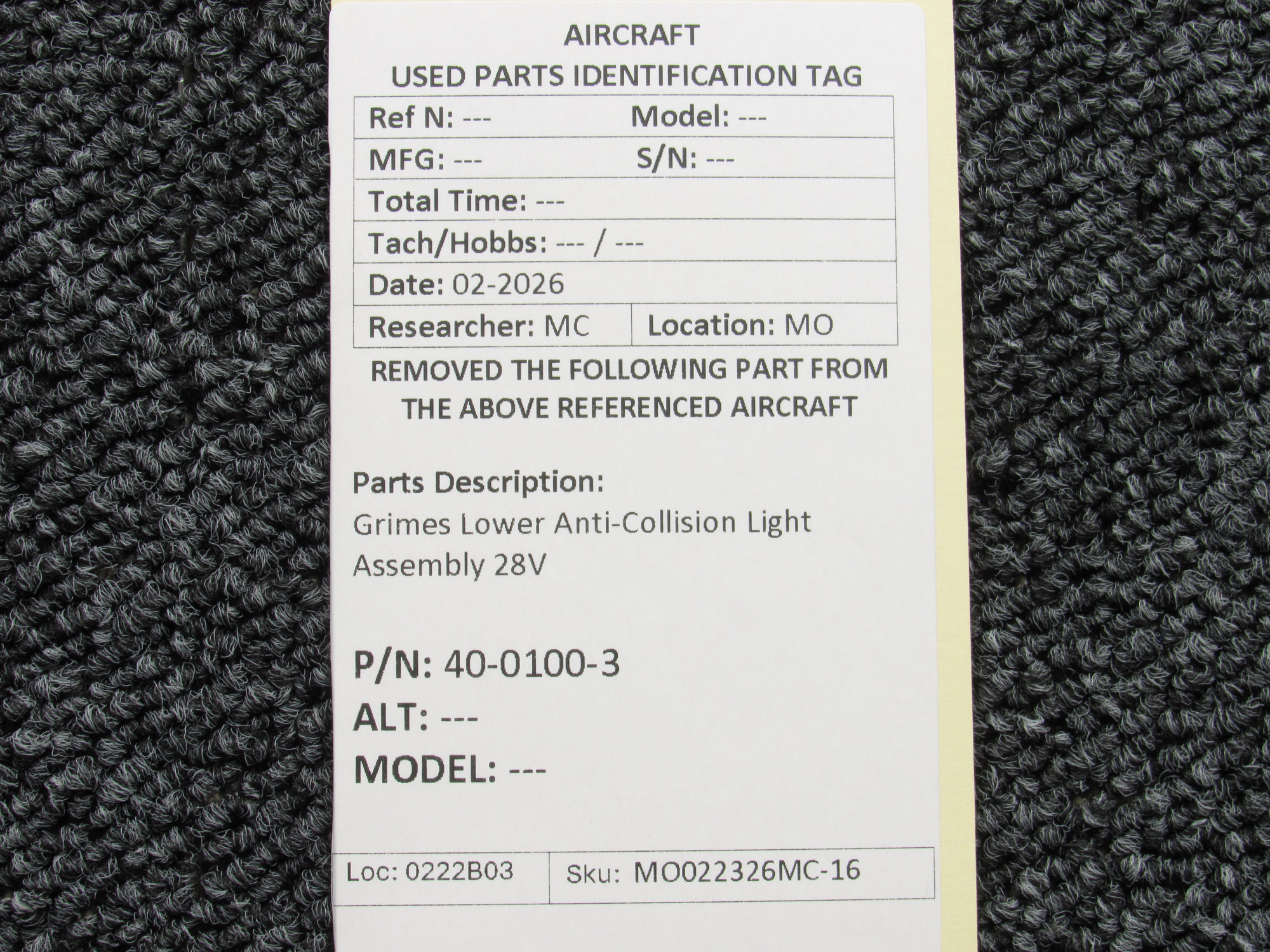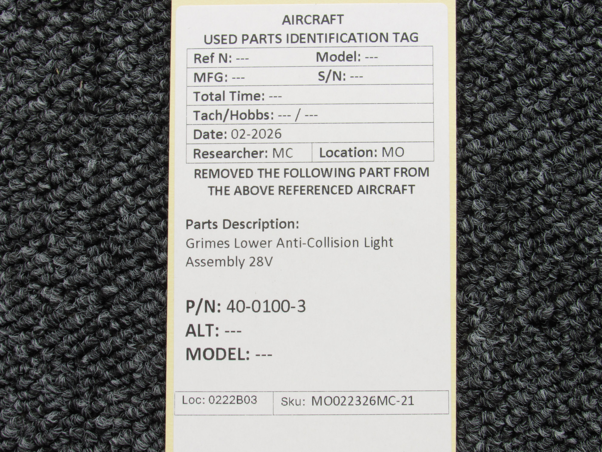 Unless specifically noted, most of our used airplane parts are sold in the condition they were removed, which means you should expect the usual signs of wear and tear.