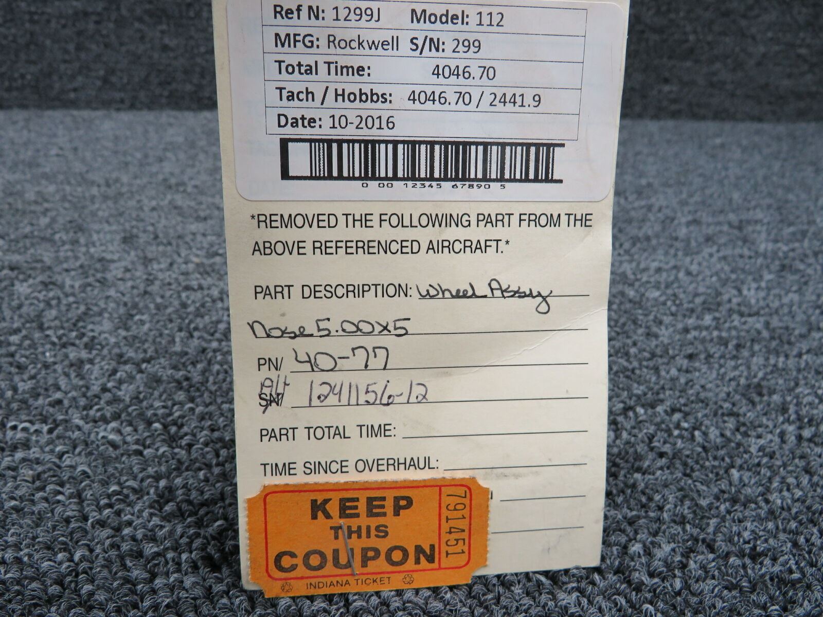 40-77 (ALT: 1241156-12) Rockwell 112 Nose Wheel Assembly 5.00x5