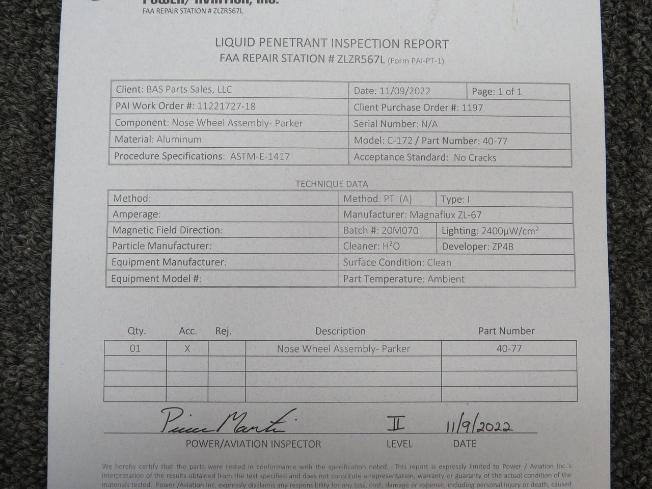 - Has ASTM E-1417 liquid penetrant inspection, form PAI-PT-1