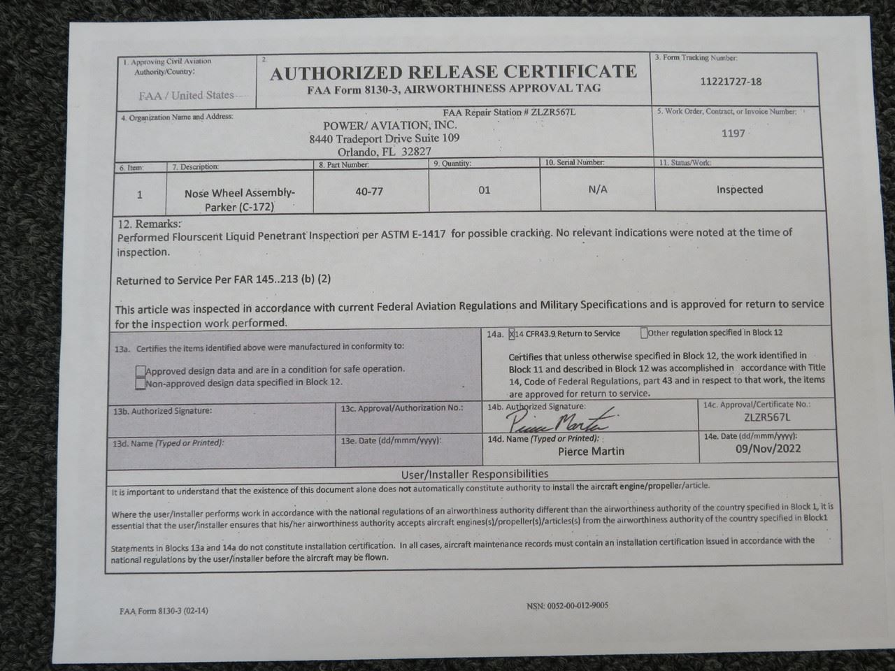 - Inspected by Power Aviation Inc. 11-9-2022