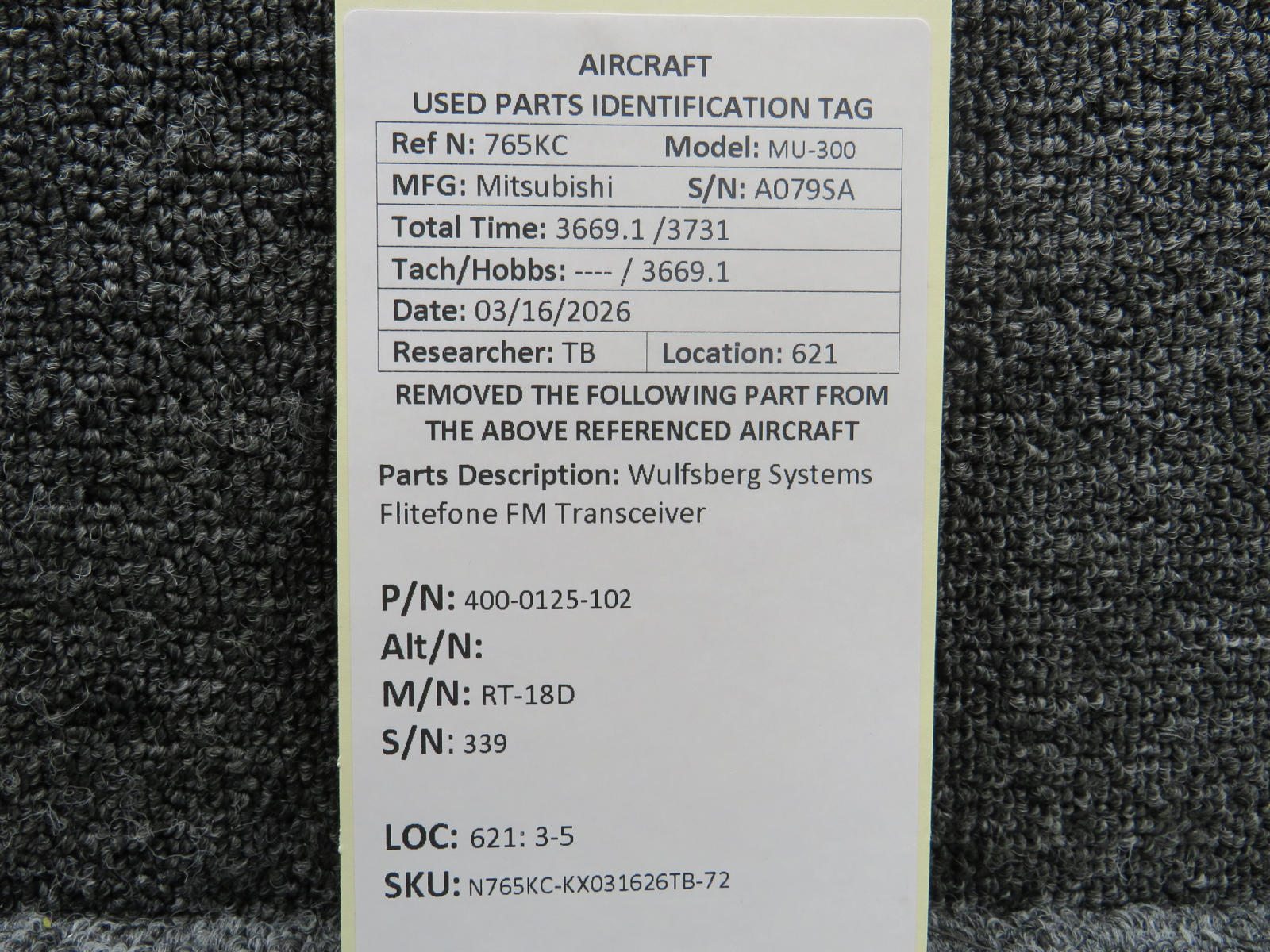 Every part is carefully inspected throughout our process and several times before it goes online. Most items are sold as-removed, just as they came off the aircraft. These parts are not functionally tested. What we do provide is clear photos, full traceability when available, pricing that reflects the as-removed condition, and a no-nonsense 90-day return window.