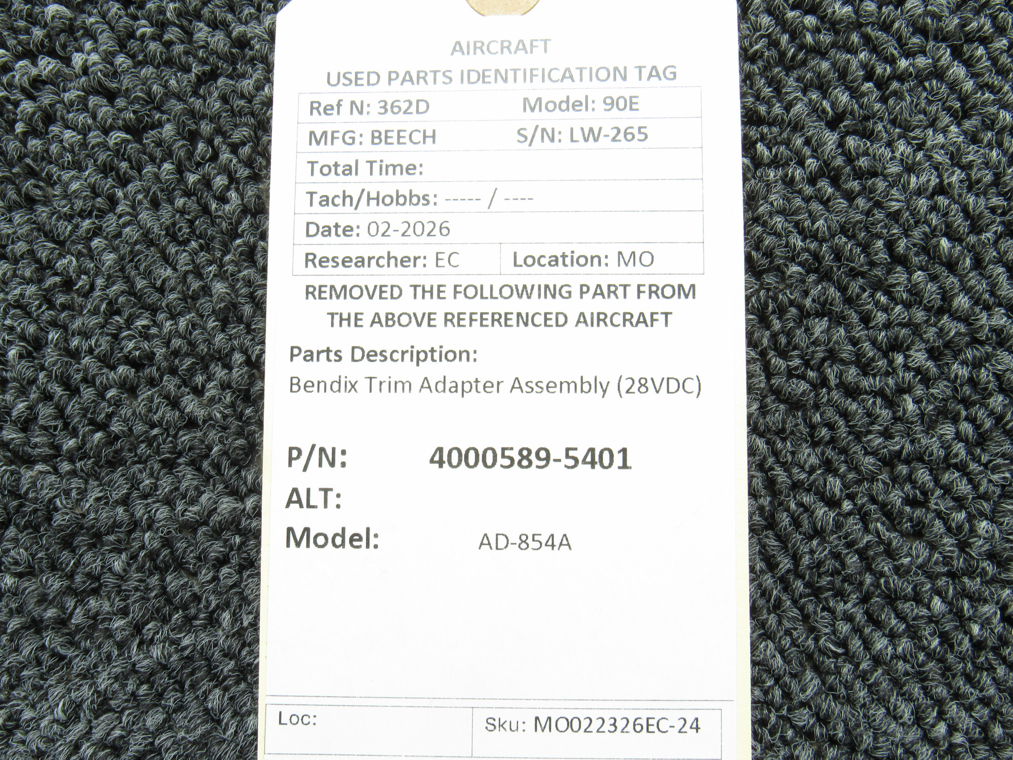 Every part is carefully inspected throughout our process and several times before it goes online. Most items are sold as-removed, just as they came off the aircraft. These parts are not functionally tested. What we do provide is clear photos, full traceability when available, pricing that reflects the as-removed condition, and a no-nonsense 90-day return window.
