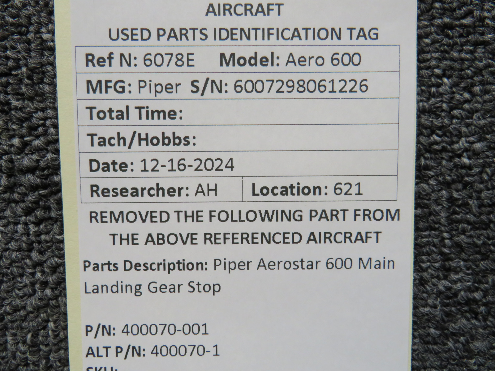 Unless specifically noted, most of our used airplane parts are sold in the condition they were removed, which means you should expect the usual signs of wear and tear.