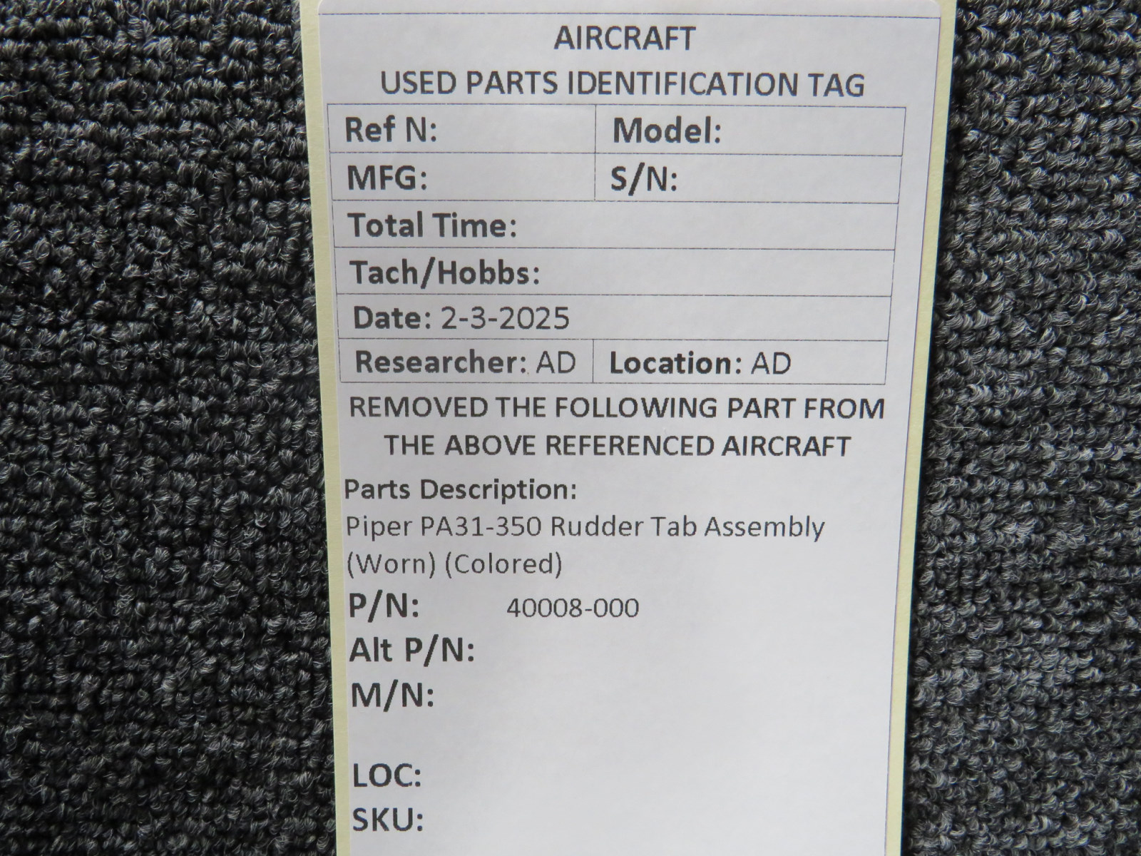 Attention International Buyers: We routinely export aircraft parts to destinations around the world. All import duties, taxes, and any other charges related to importing parts to your country are not included in the price of the item or shipping charges, these are 100% the responsibility of the buyer. Please check with your country's customs office to help determine what these additional costs will be prior to purchasing. We do not mark merchandise value below purchase value nor mark items as "gifts" as both U.S. and international law strictly prohibits this. We do not ship to forwarding shipping stations. A business or residential address is required for delivery.