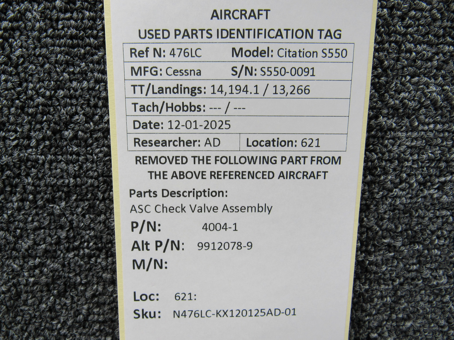 Unless specifically noted, most of our used airplane parts are sold in the condition they were removed, which means you should expect the usual signs of wear and tear.