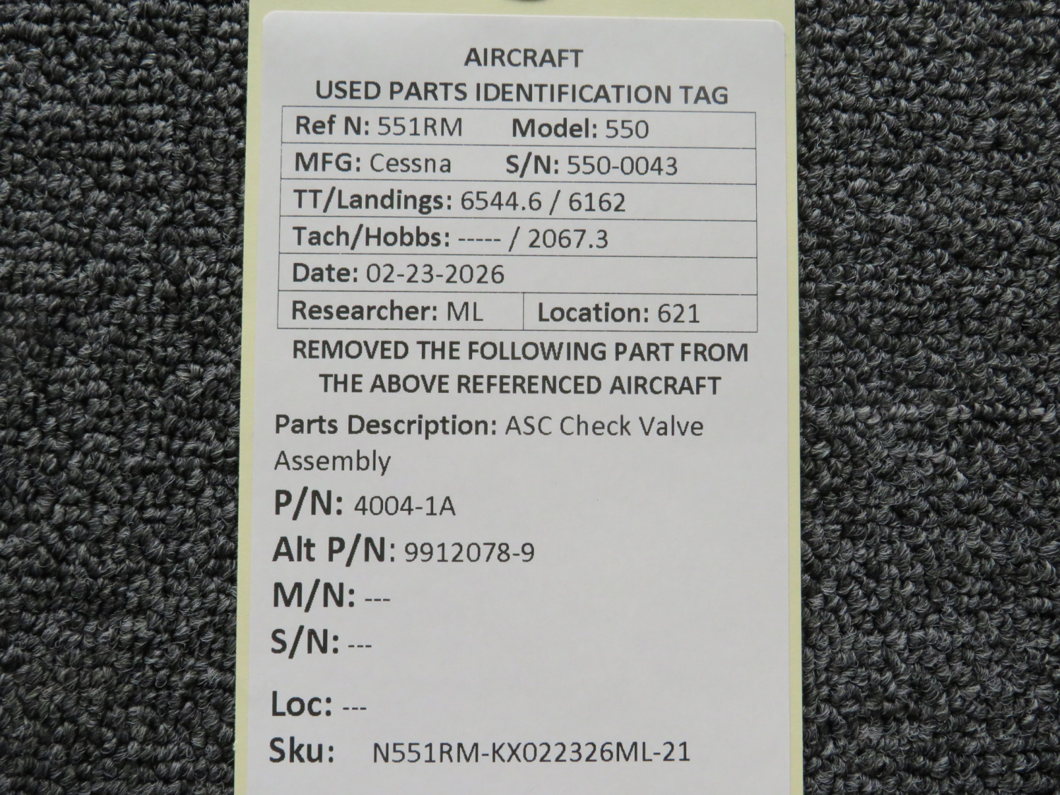 Unless specifically noted, most of our used airplane parts are sold in the condition they were removed, which means you should expect the usual signs of wear and tear.