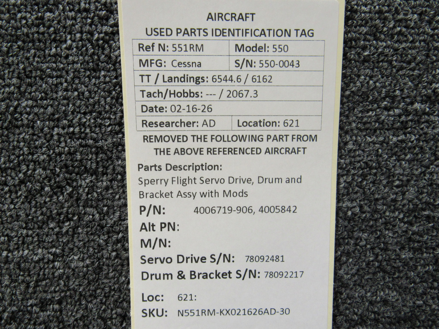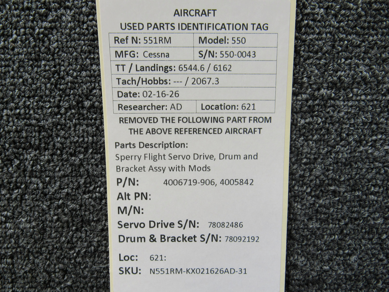 Unless specifically noted, most of our used airplane parts are sold in the condition they were removed, which means you should expect the usual signs of wear and tear.