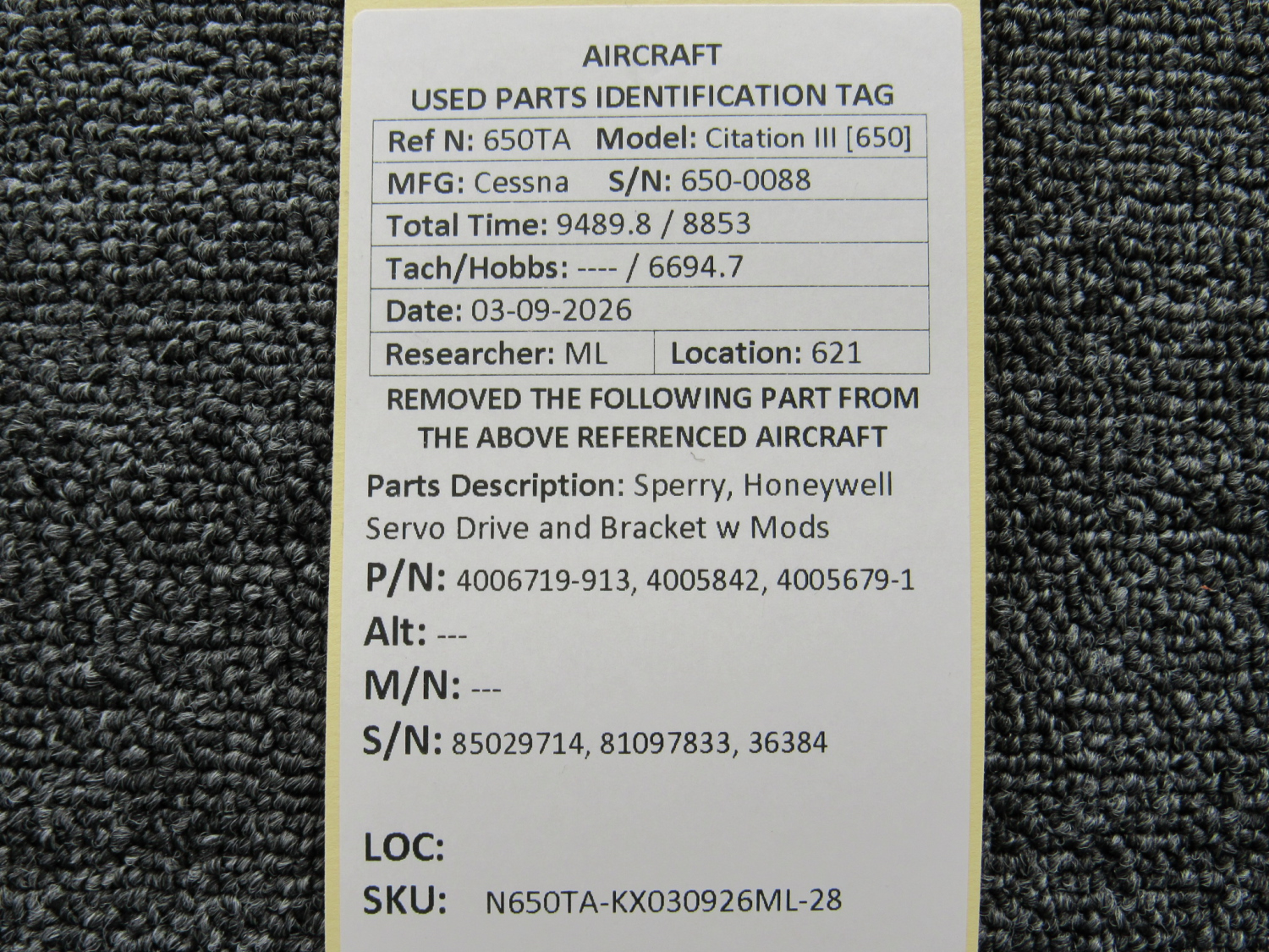 Every part is carefully inspected throughout our process and several times before it goes online. Most items are sold as-removed, just as they came off the aircraft. These parts are not functionally tested. What we do provide is clear photos, full traceability when available, pricing that reflects the as-removed condition, and a no-nonsense 90-day return window.