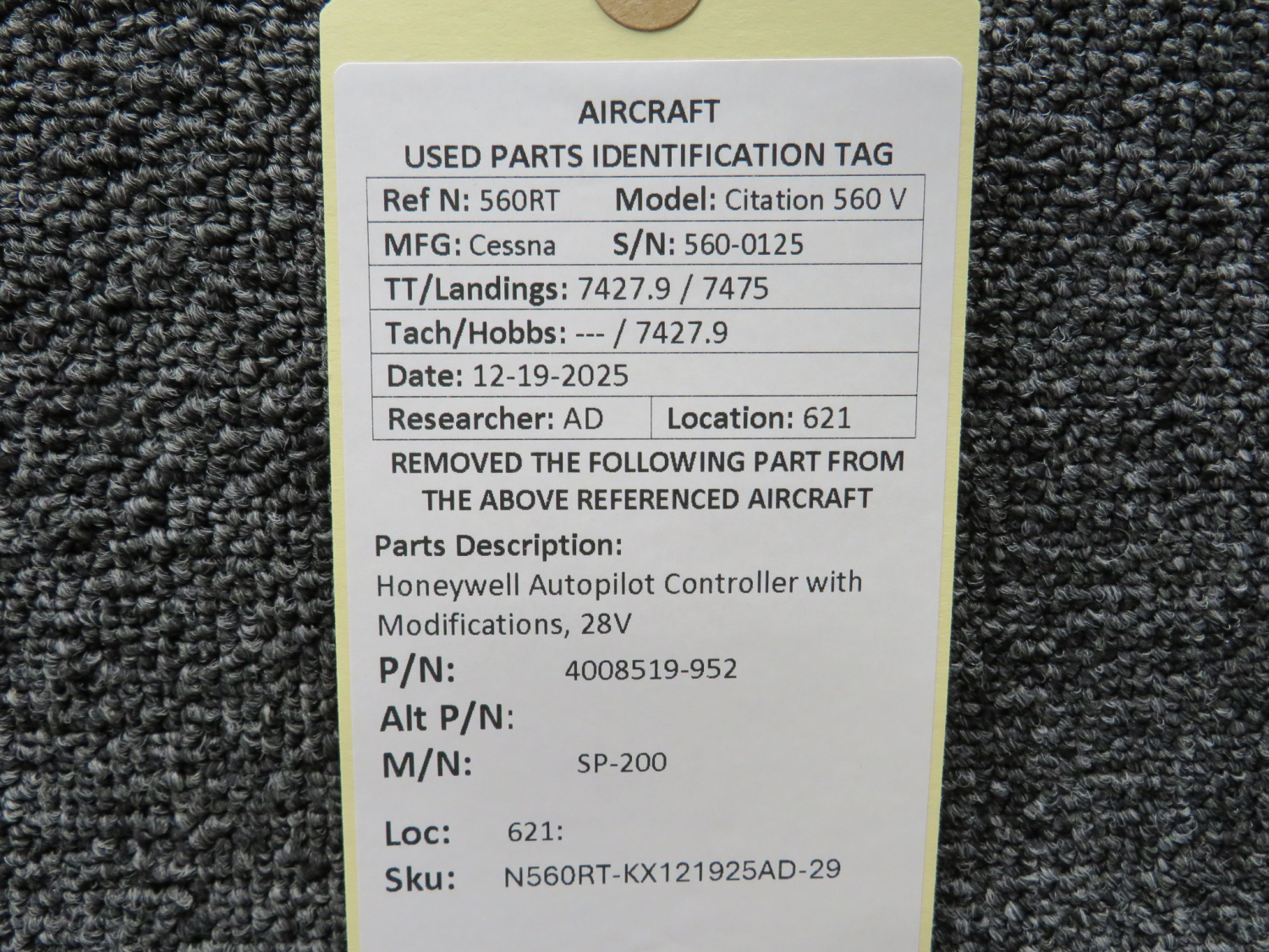 Unless specifically noted, most of our used airplane parts are sold in the condition they were removed, which means you should expect the usual signs of wear and tear.